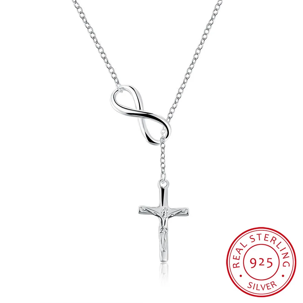Женское ожерелье с подвеской из стерлингового серебра 925 пробы Cross Infinity, хорошее ювелирное изделие, лучший рождественский подарок для дам