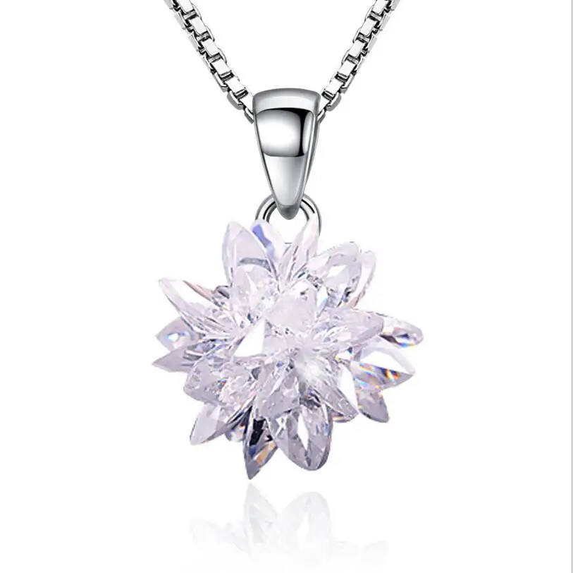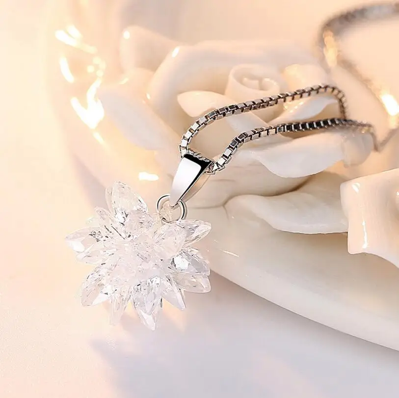 Новое поступление 925 стерлингового серебра роскошные циркония цветок лотоса ожерелья и кулоны для женщин Мода стерлингового серебра-ювелирные изделия