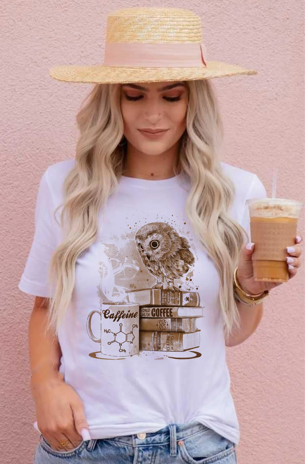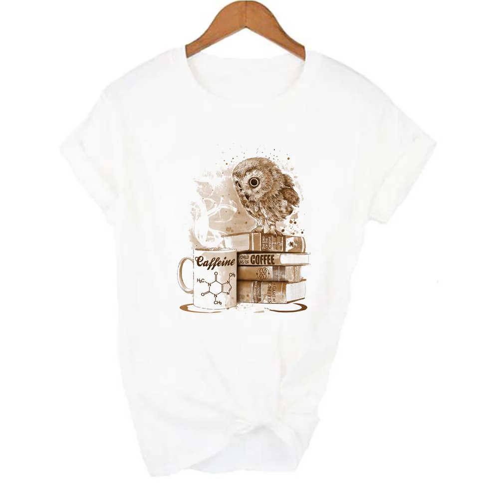 Модная женская летняя футболка с винтажным дизайном совы, футболка с коротким рукавом, повседневные топы кофейного цвета, милые женские футболки, Camisetas Mujer