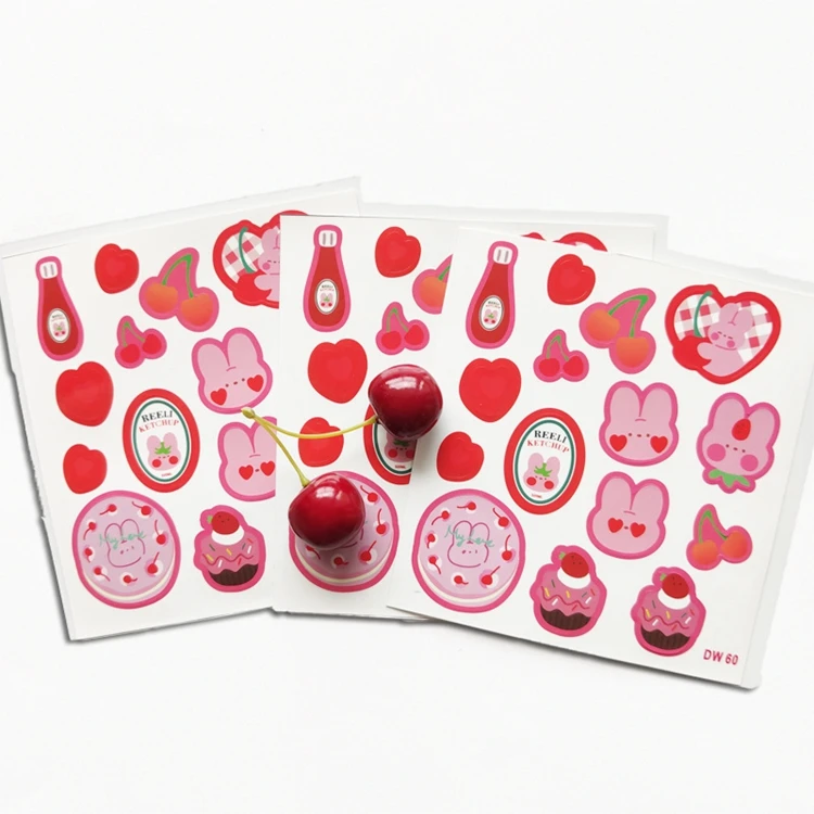 3 листа, наклейки с милыми вишневыми кроликами, декоративные наклейки для скрапбукинга, корейские наклейки сделай сам для дневника, альбома, стикеры, милые Канцтовары