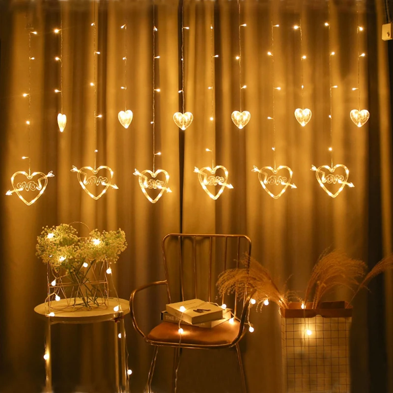220 В штепсельная вилка европейского стандарта, гирлянда-занавеска в форме сердца, светодиодная гирлянда, сказочные Рождественские огни, уличные гирлянды для вечерние ринки, дома, свадьбы, вечеринки, декор для вечеринки