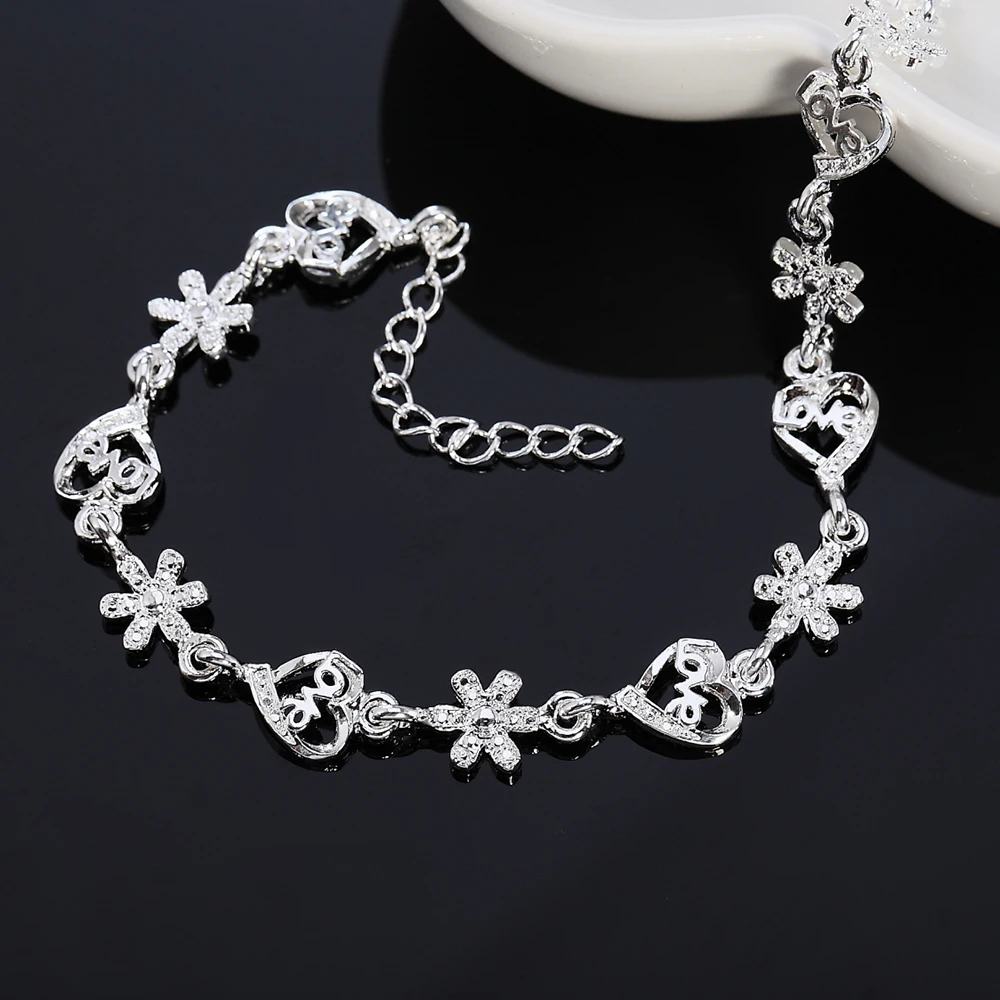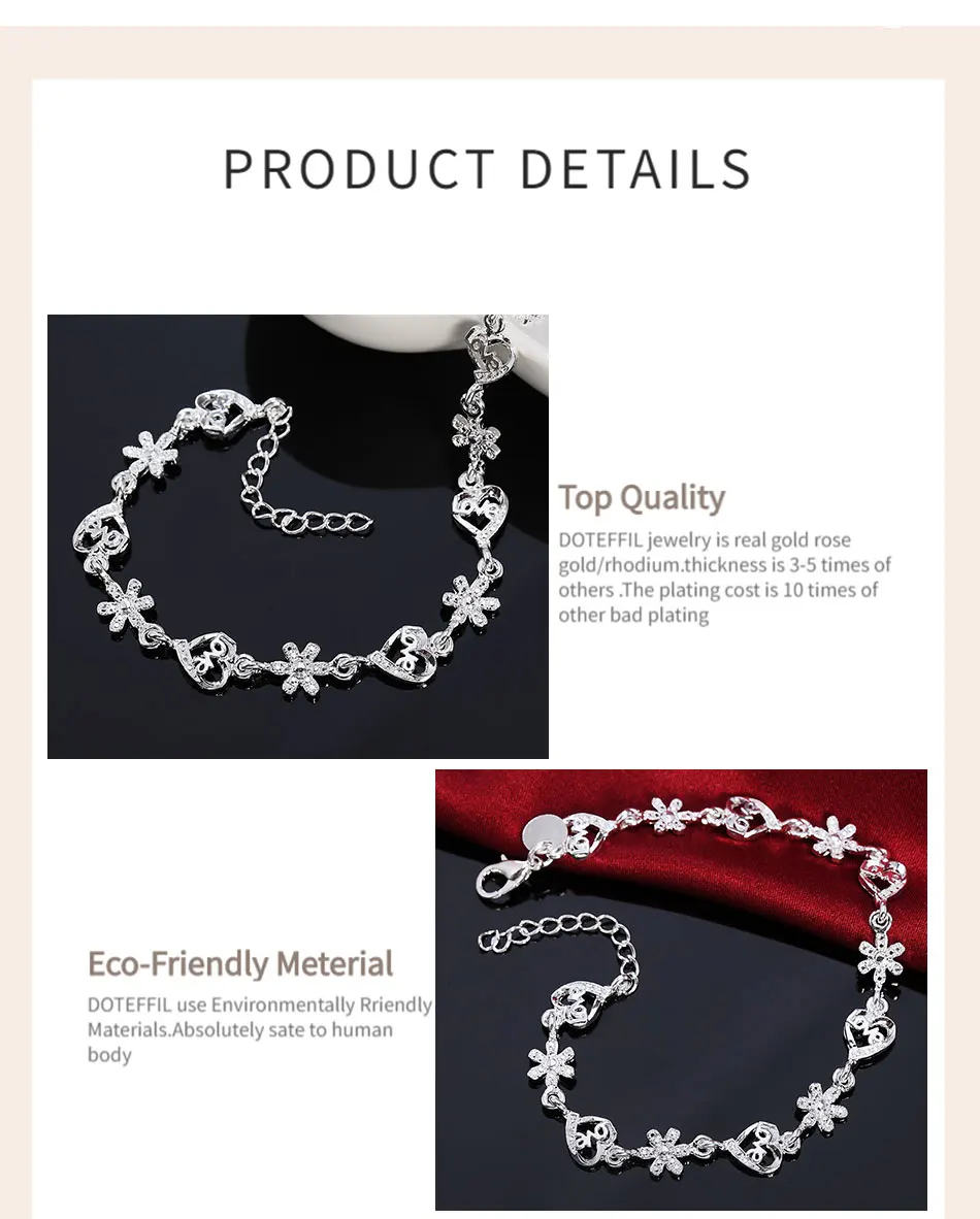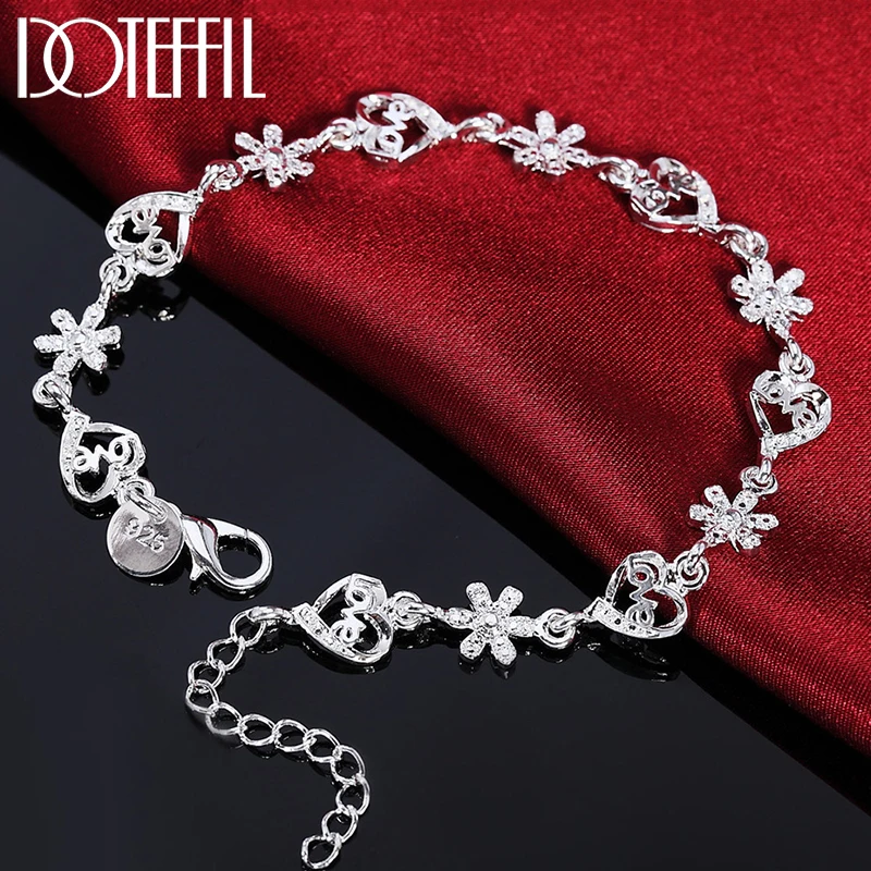 Женский браслет DOTEFFIL, из стерлингового серебра 925 пробы, с цирконием класса ААА, с цветком и сердцем, для свадьбы, помолвки, вечеринки, модные ювелирные украшения