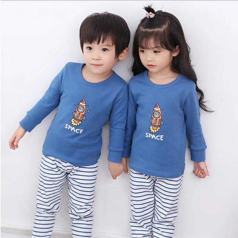 Осенние пижамные комплекты для мальчиков и девочек детский комплект...