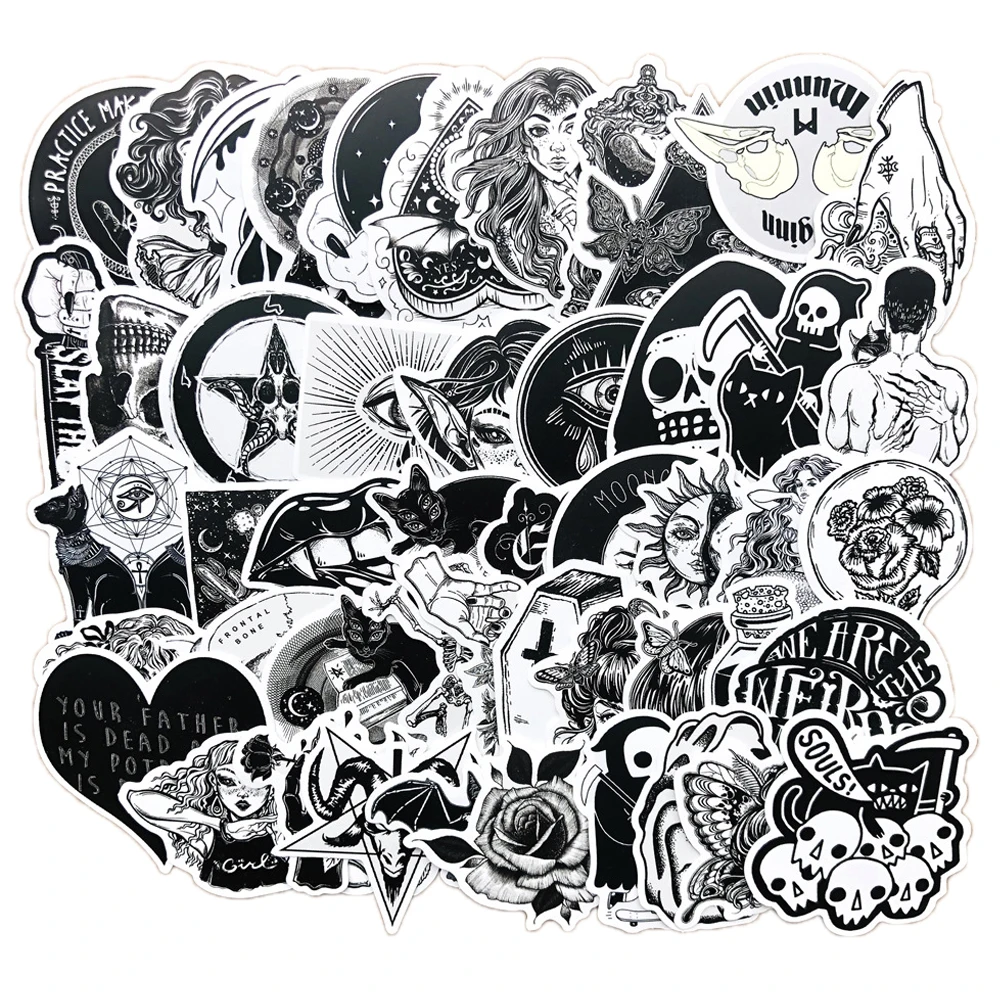 50 шт./упаковка, черно-белые наклейки, крутая пегатина, водостойкая ПВХ для ноутбука, ноутбука, граффити, телефона, скейтборда, гитары, багажа, автомобиля, велосипеда, мотоцикла, наклейки, наклейки, украшения «сделай сам»