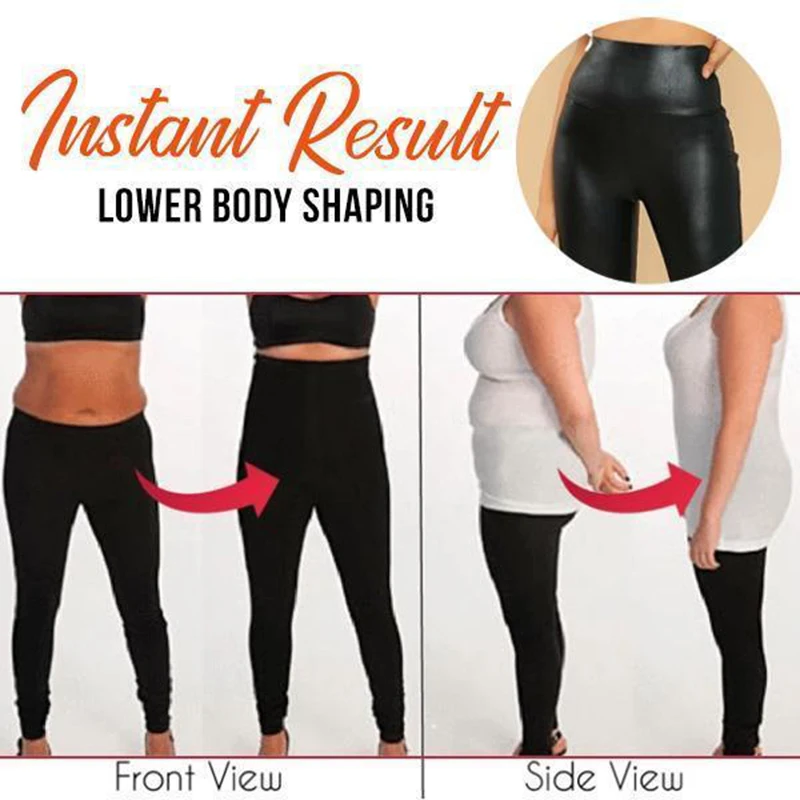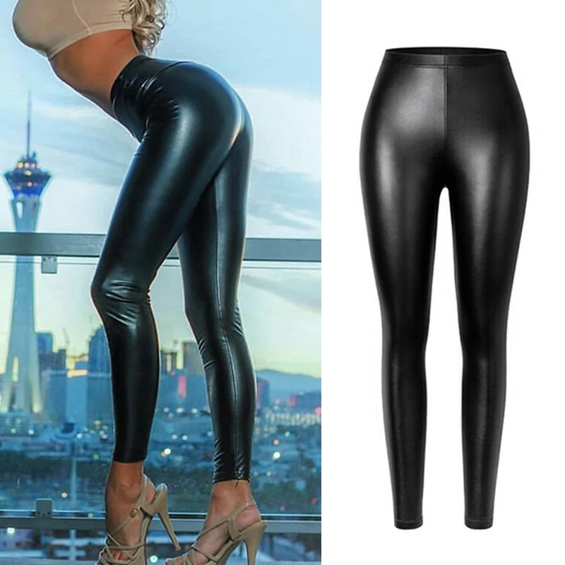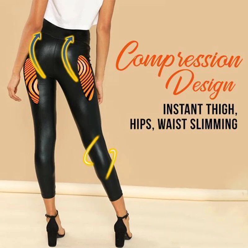 Стрейч-Fit черный PU кожаный корсет высокая талия леггинсы тонкие брюки для женщин-MX8