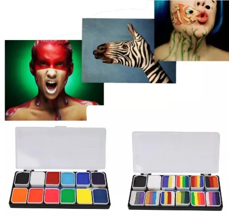 Краска для лица, тела, на водной основе, для Хэллоуина, вечевечерние, игры в бал, веер, необычный боди-арт, макияж, пигмент, краска для тела, инструмент для красоты, макияжа, 12 видов цветов