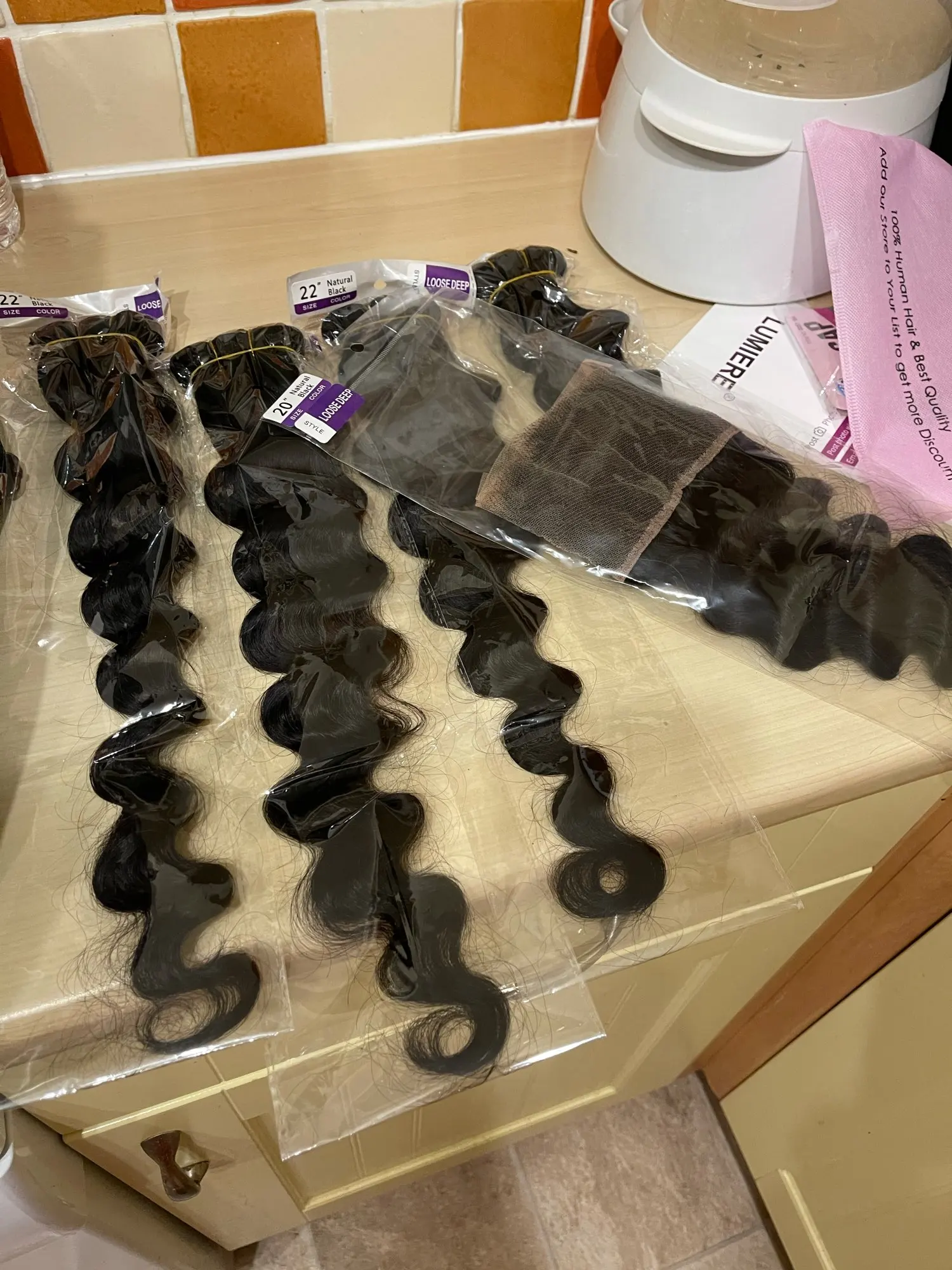 Эти волосы Потрясающие. Он очень мягкий, а рисунок изгиба-это все. Волосы хорошо пахнут, как они были вымыты или дезодорированы до упаковки. Доставка занимает всего 5 дней. Волосы прибыли в розовый мешок на молнии, содержащий парик и все волосы в отдельных мешках с отображением измерений. Это также соответствует длине. Я так доволен этой покупкой, и я отправлю фотографии установки, как только это будет сделано.