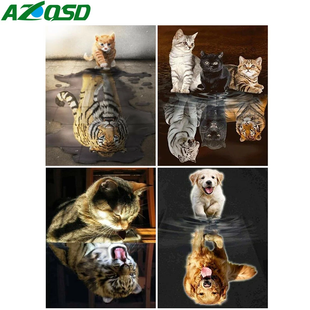 AZQSD картина маслом по номерам животных Наборы уникальный подарок DIY Раскраска по номерам на холсте кота Тигра украшение дома