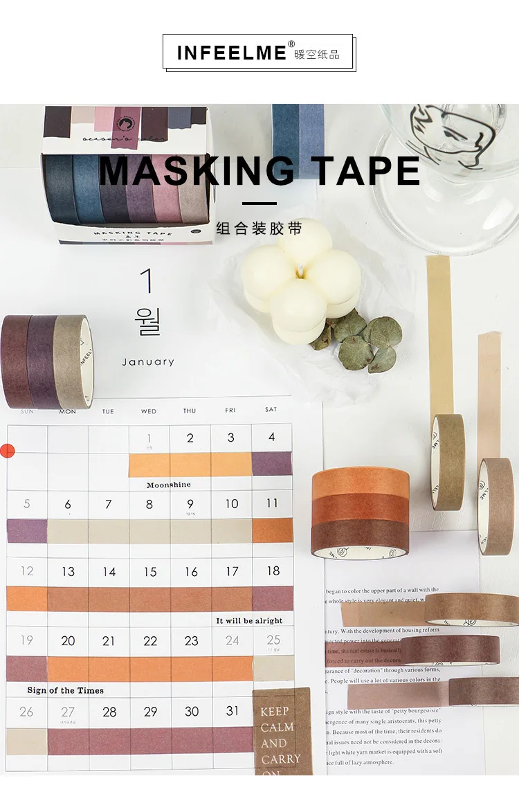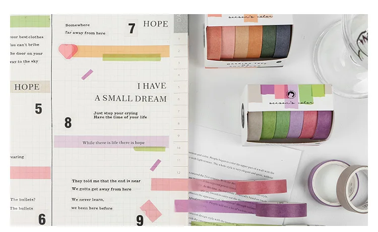 Набор декоративного скотча Васи, 6 рулонов, цветная записываемая бумага, клейкая лента для маскировки, ширина 10 мм, Клейкая Бумажная лента, бумажная лента для рукоделия, декоративная этикетка для скрапбукинга