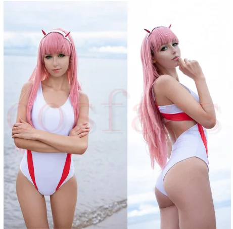 Костюм для косплея аниме DARLING in the FRANXX Код: 002 Zero Two, сексуальное боди для женщин, комбинезон, купальник и парики для Хэллоуина