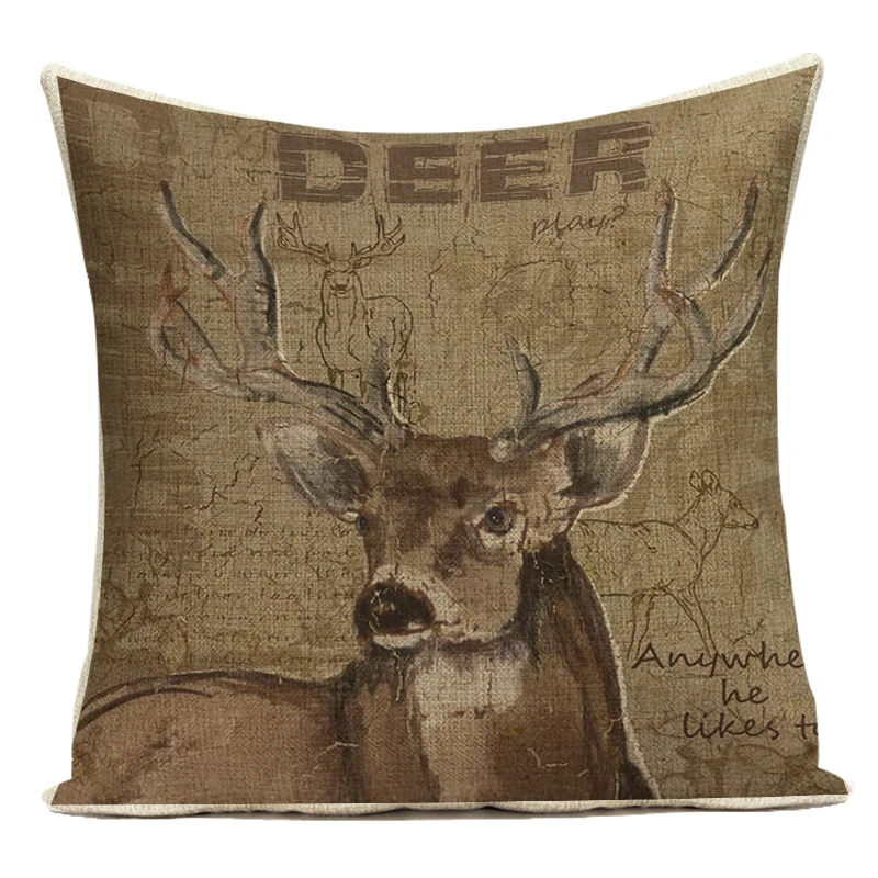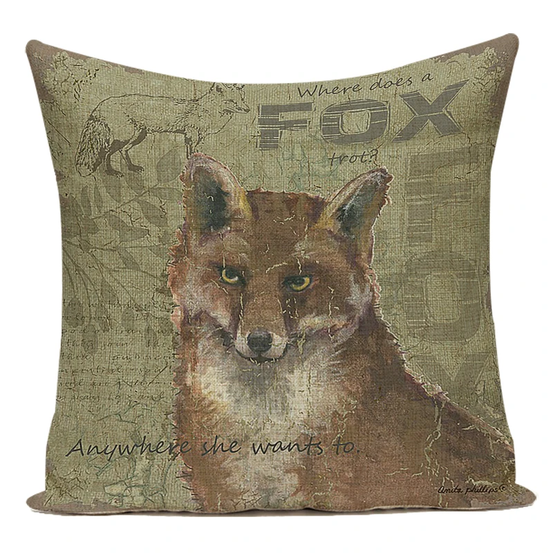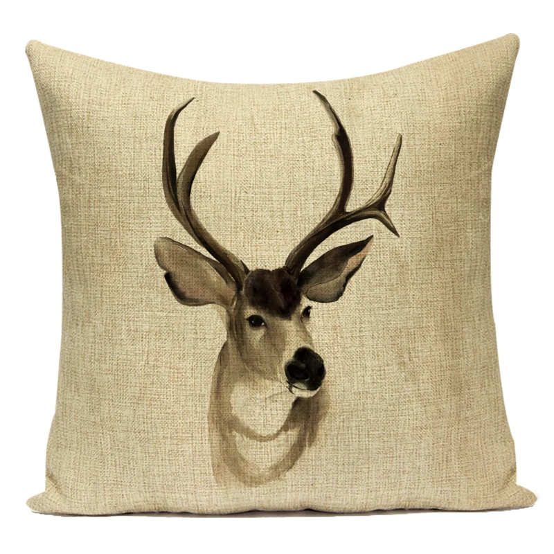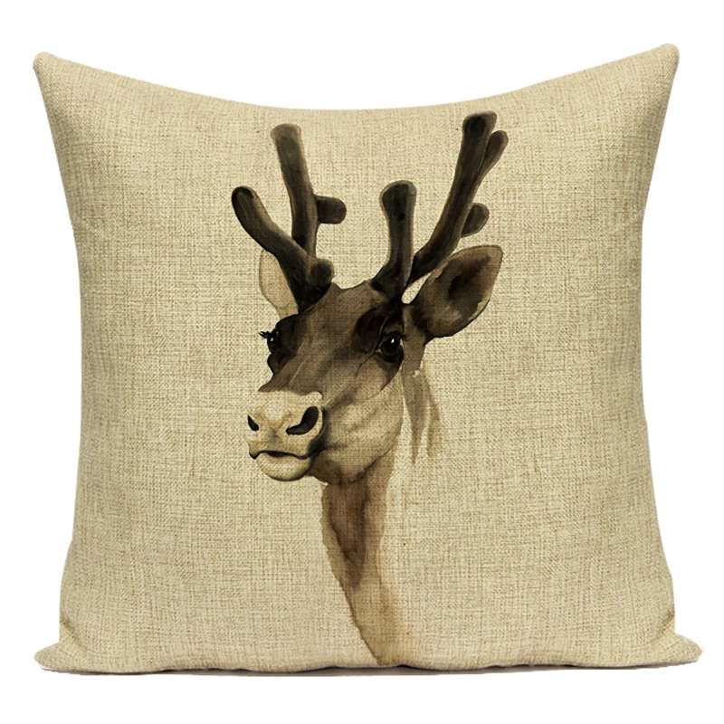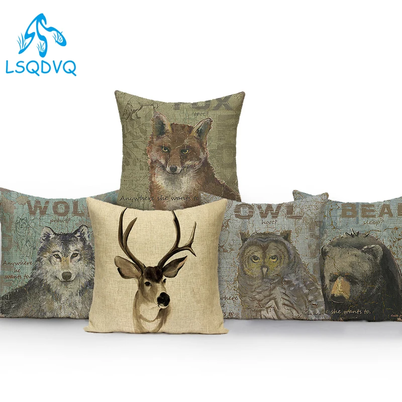 Декоративные подушки из полиэстера в винтажном стиле с животными, волком, оленем, совой, ретро, наволочка для дивана, автомобиля, дома, гостиной, украшение