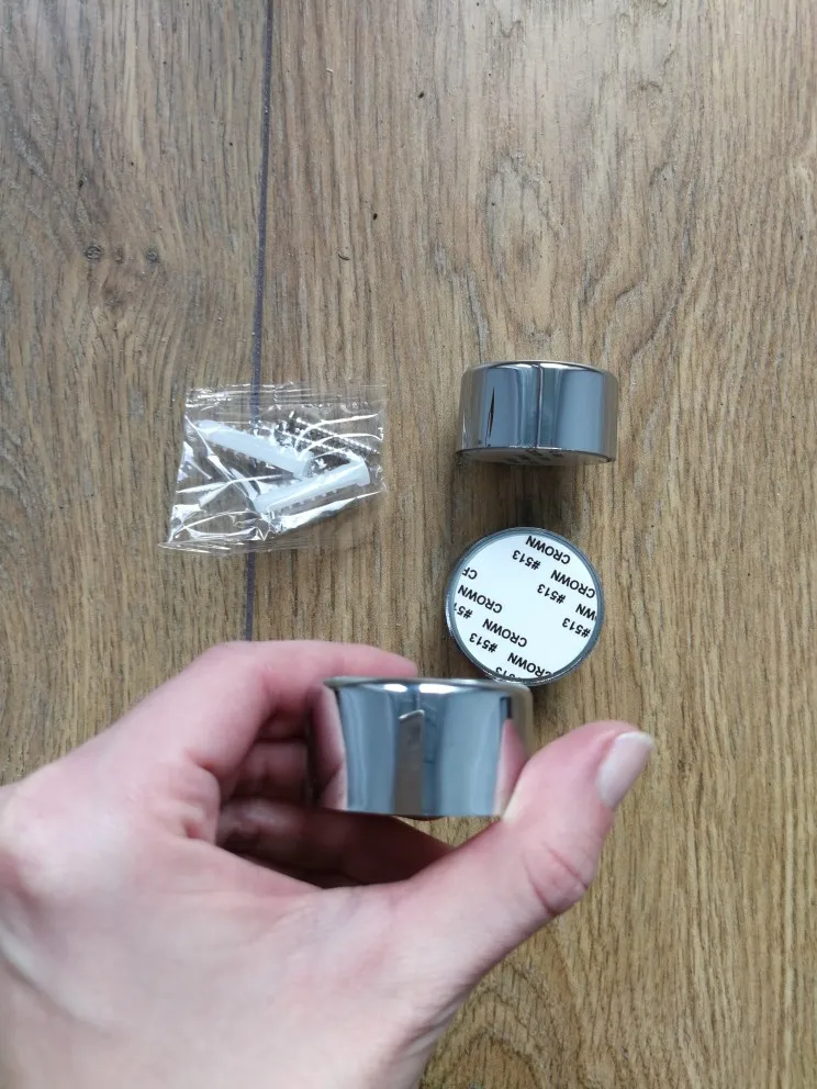 Очень понравились держатели. Здорово, что можно присверлить, а можно липучкой приклеить. Я приклеила. Вроде крепко держаться и красиво смотрится!