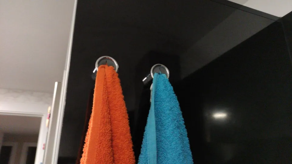 Аккуратные держатели полотенец. Скотч держит хорошо.