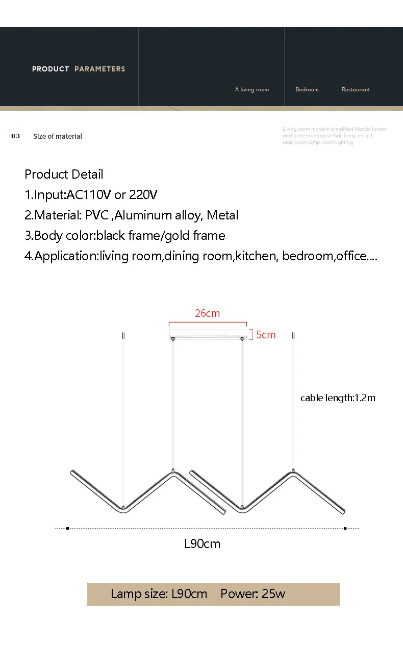 Минималистская линия светодиодная Люстра для ресторана Nordic moder...