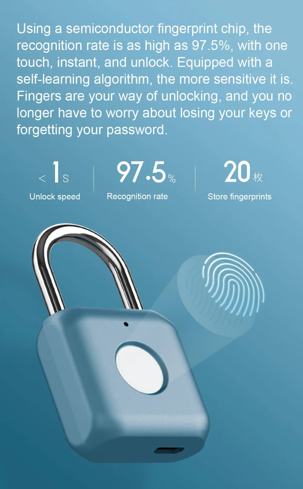 * Чувствительная и быстрая технология разблокировки отпечатков пальцев, подходит для путешествий/дома/офиса
