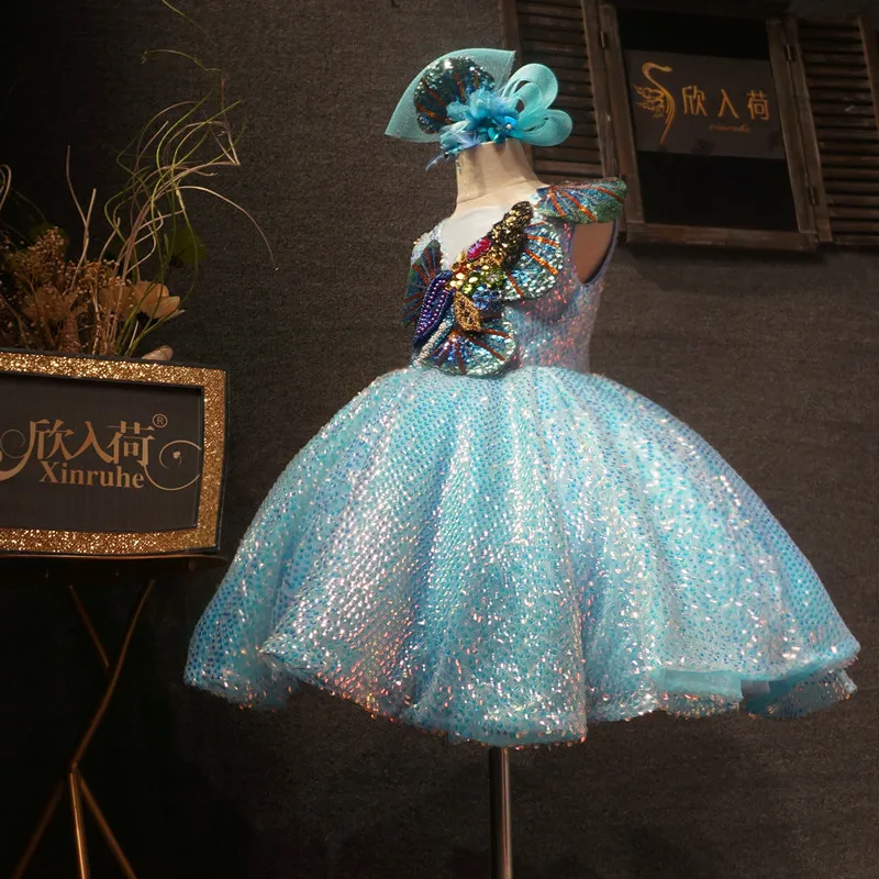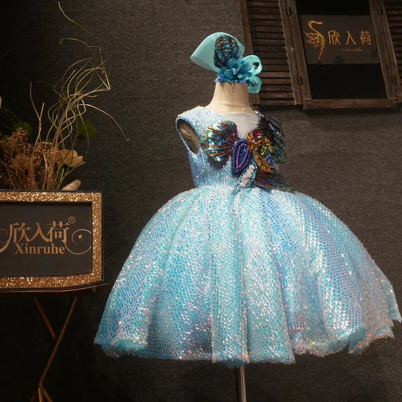 Блестящие платья с блестками для девочек, праздничные платья с высо...
