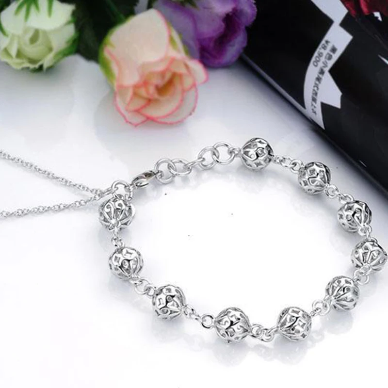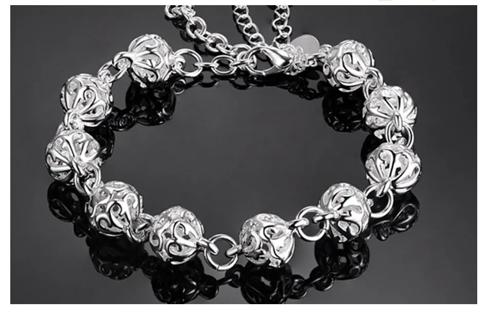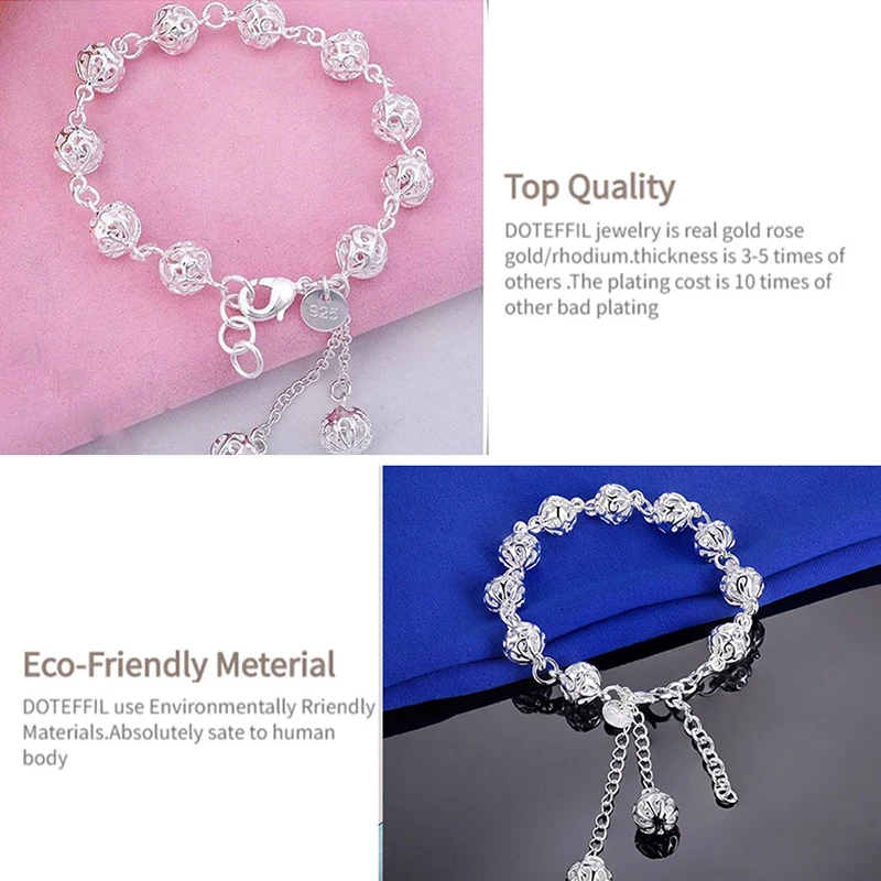 Браслет DOTEFFIL из стерлингового серебра 925 пробы с полым шариком 8 мм для женщин, модные ювелирные украшения для свадьбы, помолвки, вечеринки