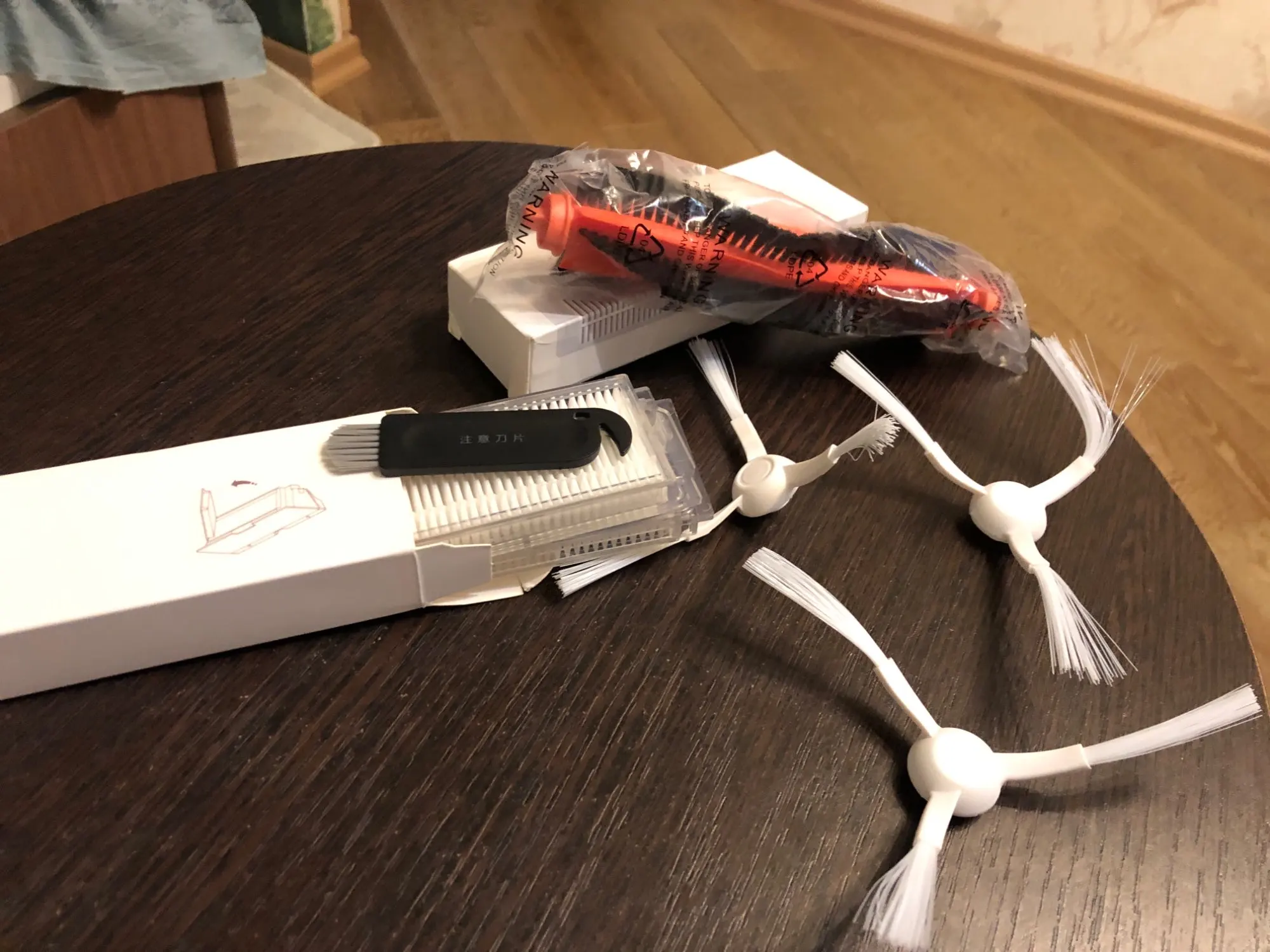 Быстрая и очень удобная доставка в Украину. Качество аксессуаров на высоте. Основная и боковые щётки в точности как оригинальные. Сами фильтра не оригинальные, но их качество отличное. Начитался отзывов что сам фильтр у многих выпадает со своего корпуса, так вот тут такого нет. Фильтр в корпусе сидит плотно и совсем не выпадет, такая конструкция корпуса. Однозначно буду заказывать тут ещё!