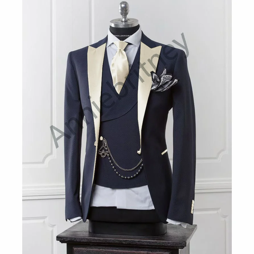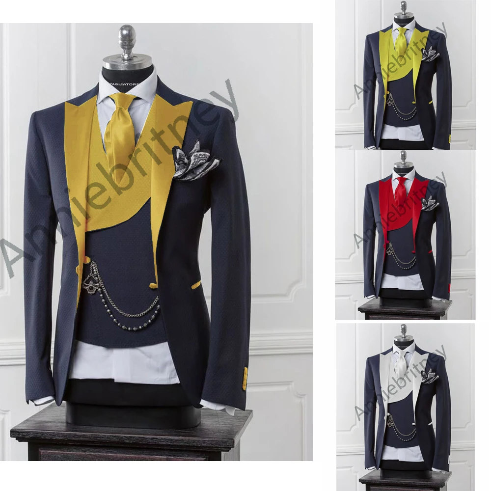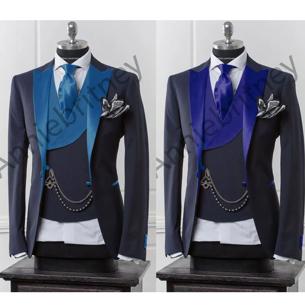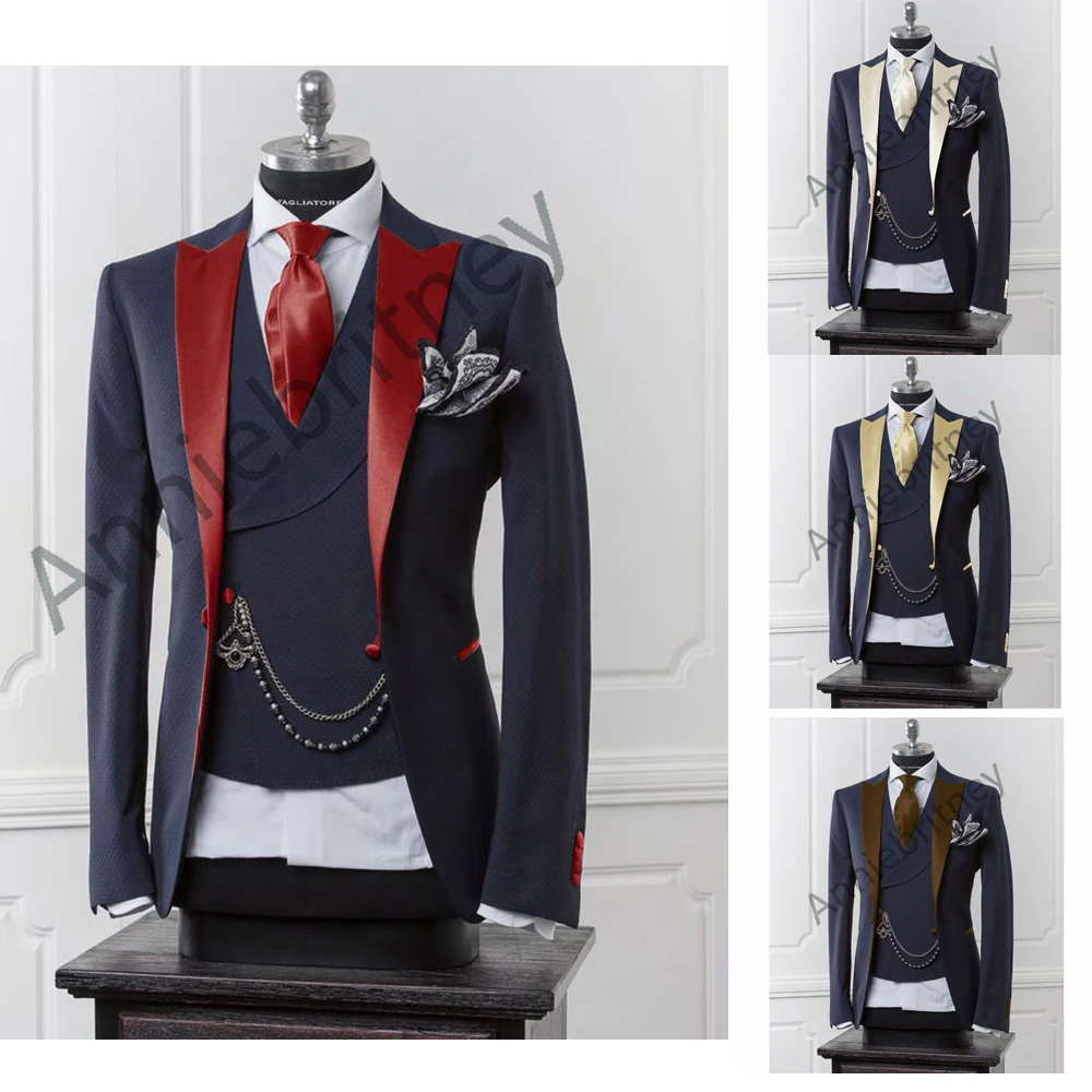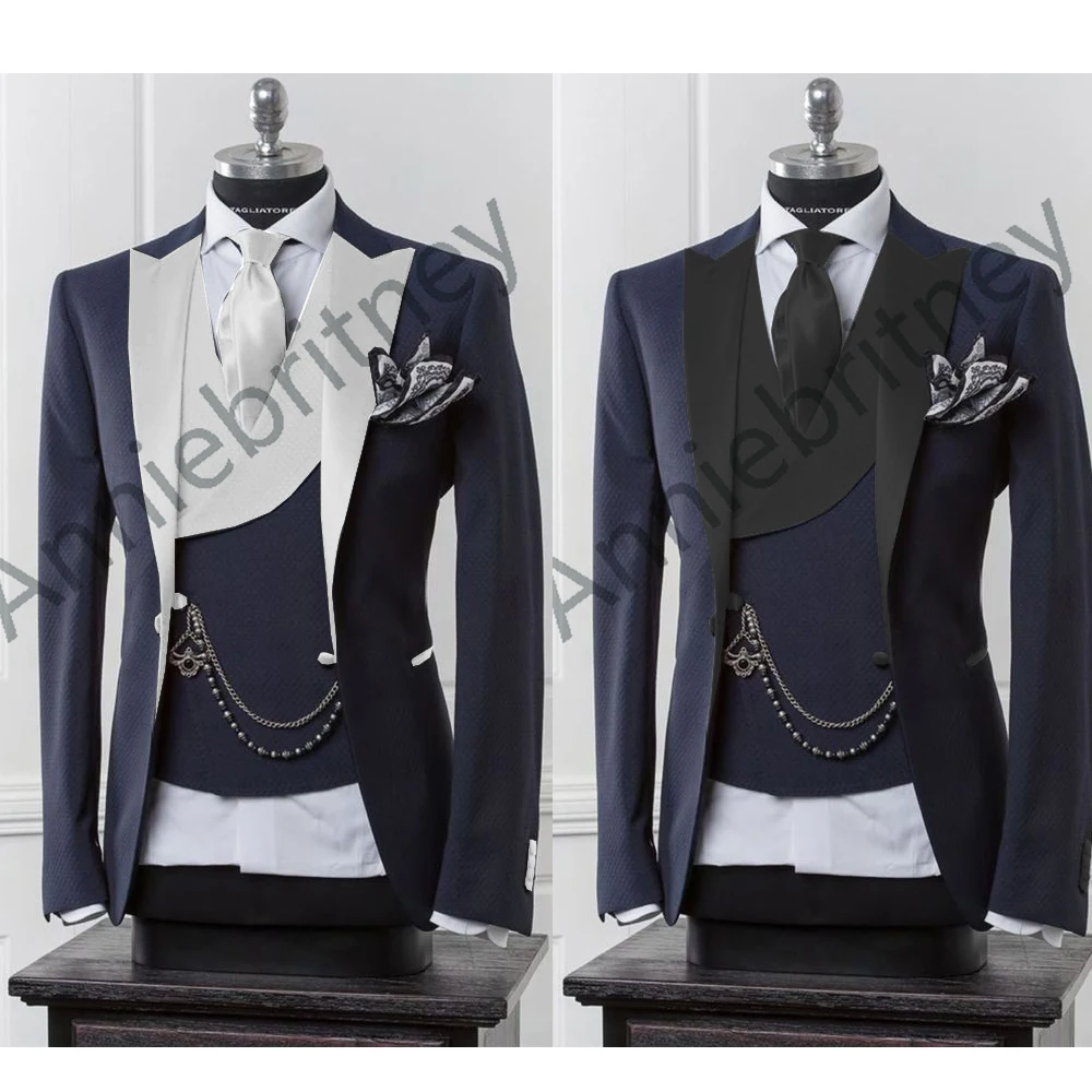 (Куртка + брюки + жилет) черный мужской блейзер современный костюм с брюками облегающий свадебный для мужчин формальная куртка, смокинг костюм для мужчин