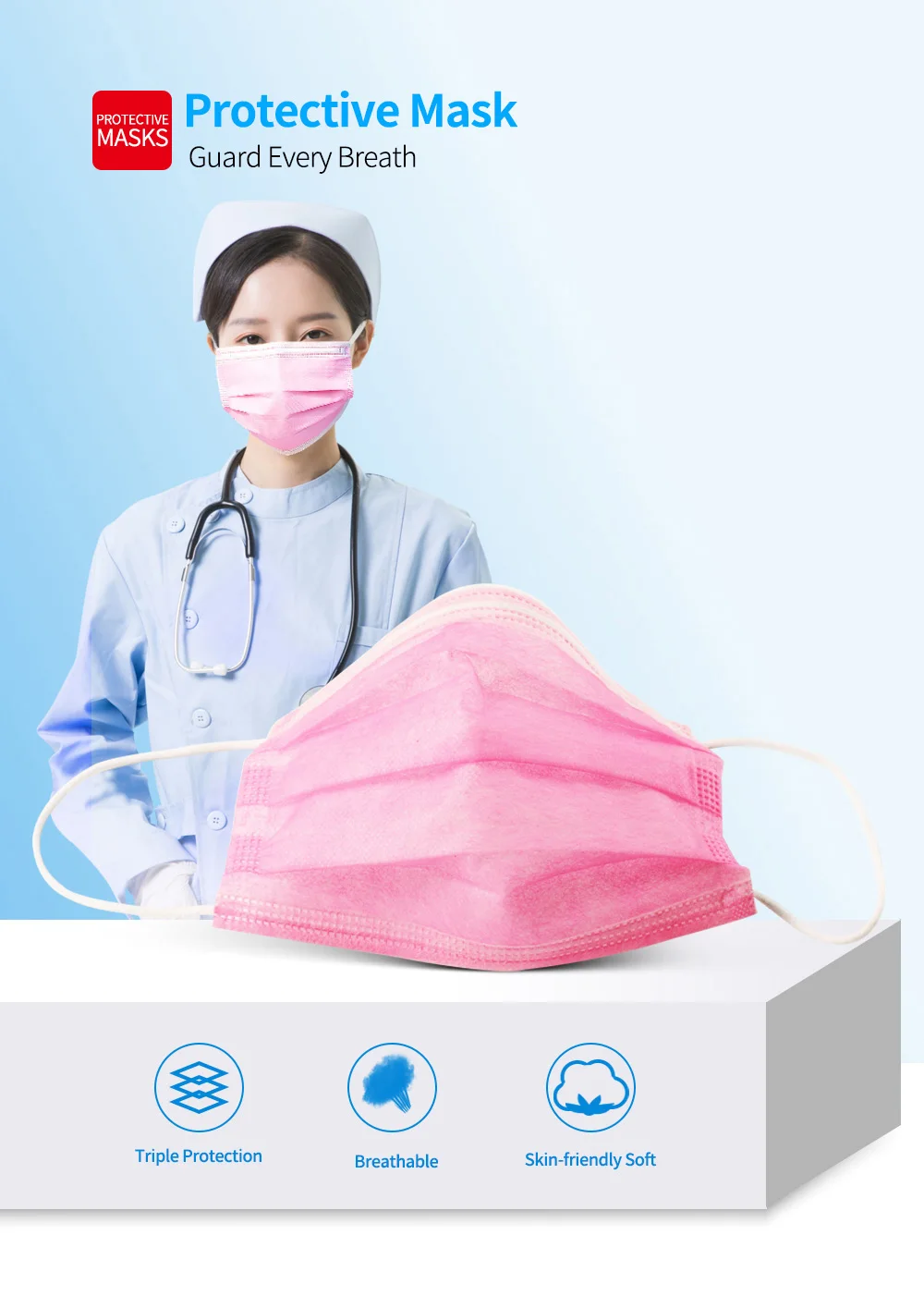 Одноразовая маска гражданского 3-х слойные ежедневная маскаПараметры продукта:Материал: трехслойный нетканый материалПодходящий сезон: Весна, Осень, Зима, ЛетоЦвет: розовыйСтиль маски: Тип ухаРазмер: один размерОсобенности продукта:1. Новая ткань PP Нетканая ткань, мягкая и чистая, удобная и дышащая2. Процесс бесшовной вязки3. Три раза дизайн, больше дышащего пространства на лице4. Пластиковая полоска для носа, алюминиево-пластиковая полоска для носа,5. Многослойная защита для вашего дыхательного здоровьяКак носить маску:1. Закройте рот и нос и Повесьте два боковых ремня на уши2. Фиксация моста носа в соответствии с формой носа предотвращает загрязнения воздуха от входа.3. Пожалуйста, потяните маску к нижней челюсти, чтобы немедленно предоставить трехмерное дышащее пространство.Пожалуйста, обратите внимание, что указанный Товар производится и распространяется за рубежом и в соответствии с законодательством страны его происхождения