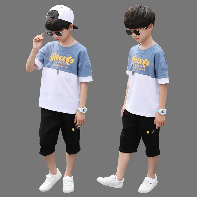 Новые летние комплекты одежды для мальчиков, Детская футболка с коротким рукавом + штаны, комплект из двух предметов, детская одежда для маленьких мальчиков 6, 8, От 10 до 11 лет