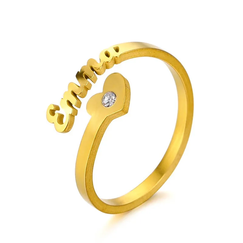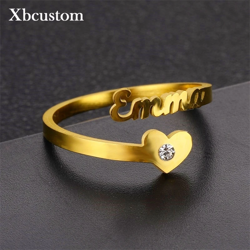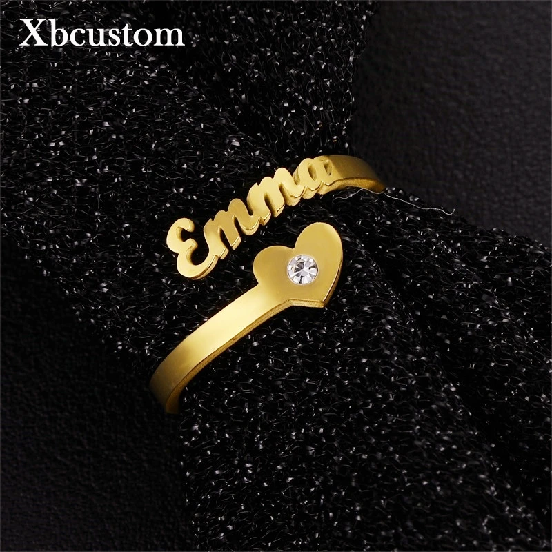 Кольцо на заказ, кольцо с именем и сердцем из циркония, искусственное кольцо на заказ для пары, кольца из нержавеющей стали для женщин, кольцо на заказ