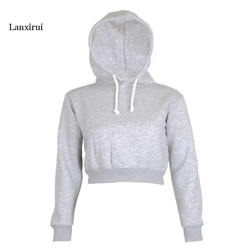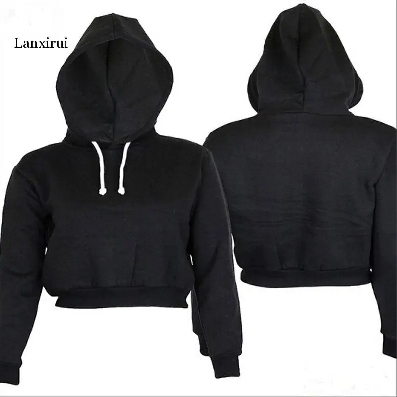 Осенняя Женская толстовка с капюшоном, однотонная укороченная Толстовка с длинным рукавом, джемпер с капюшоном, пуловер, пальто, Повседневная Толстовка, топ, Sudaderas Mujer