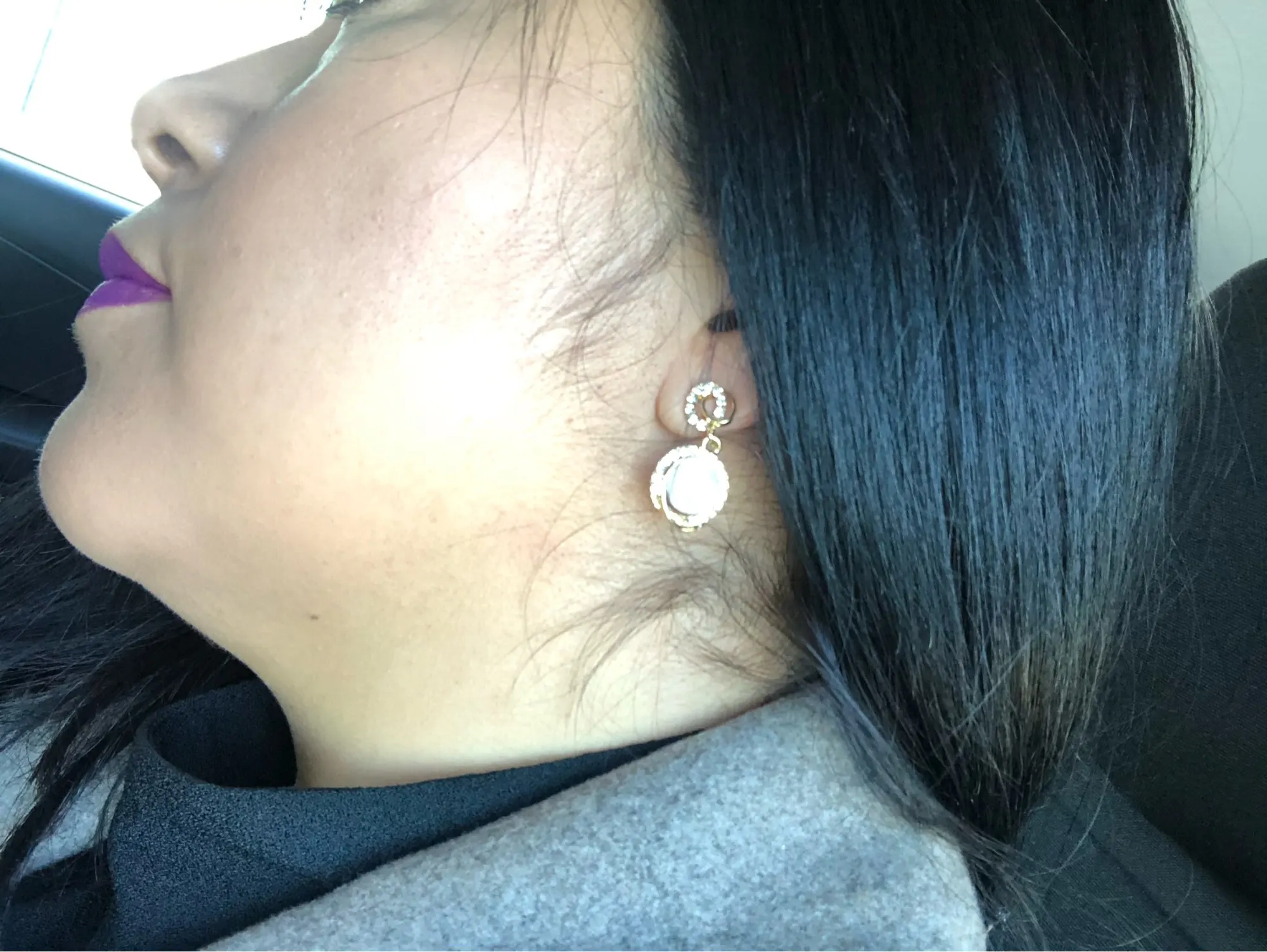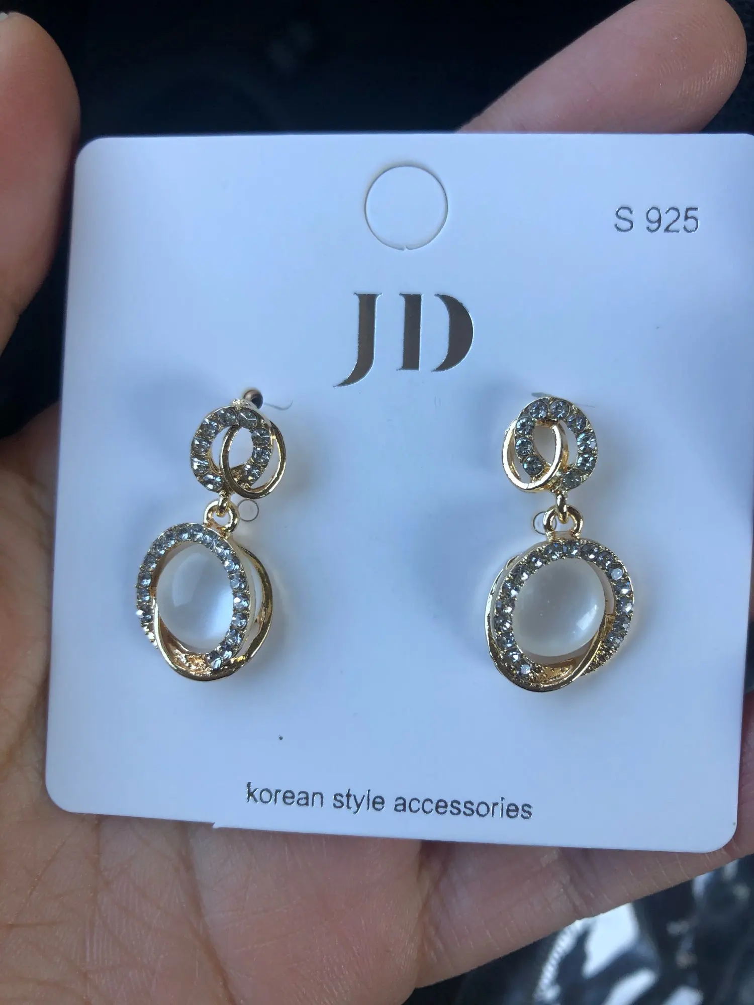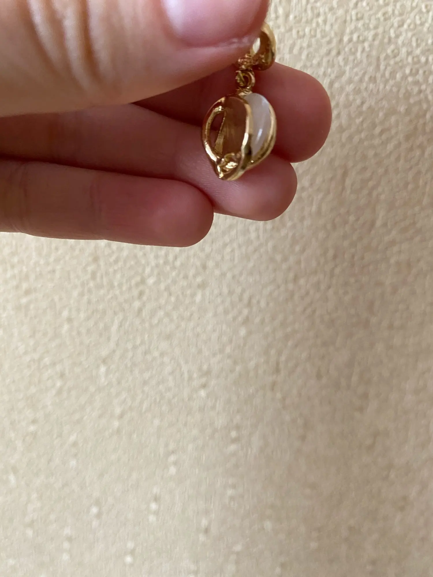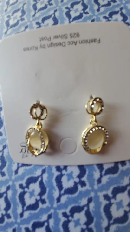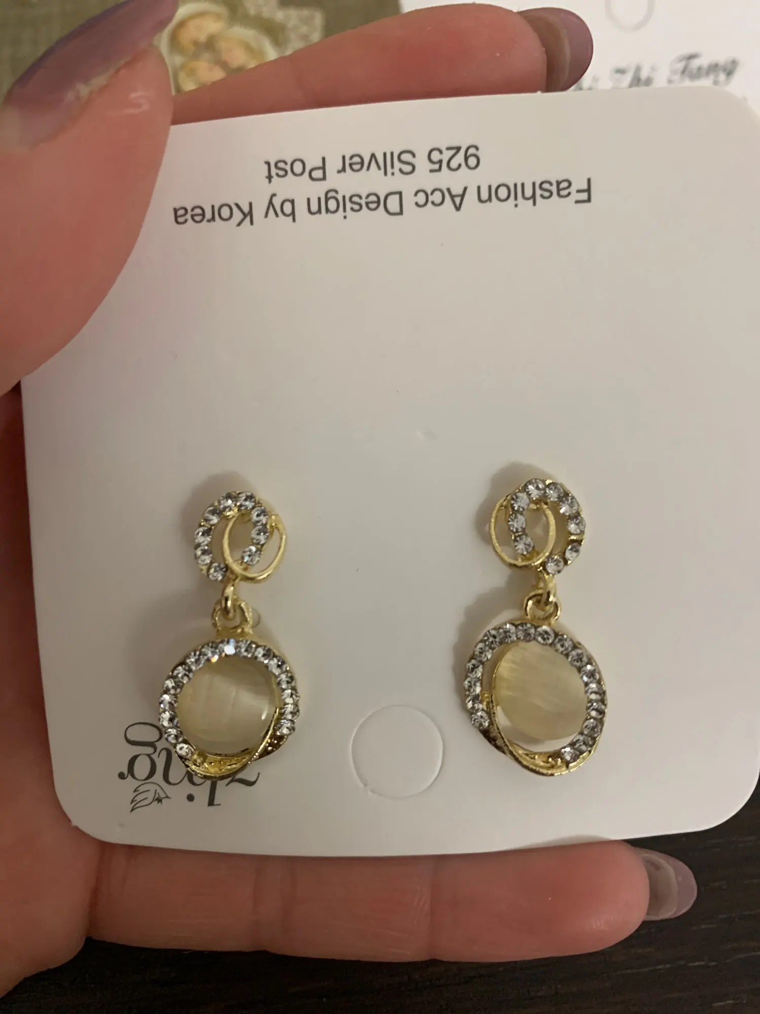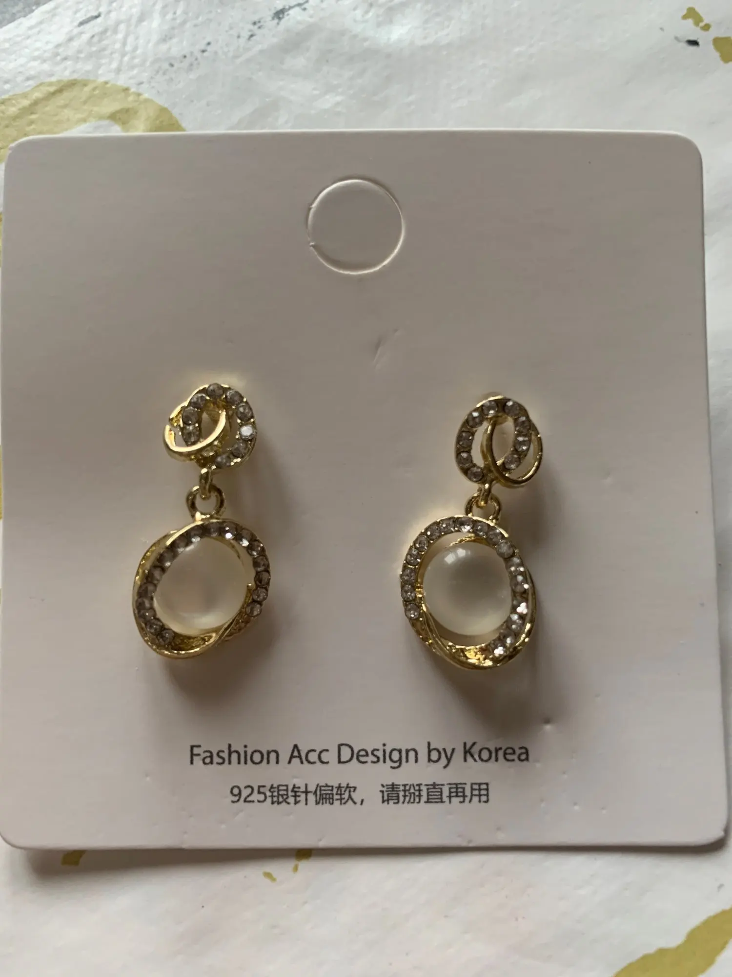 очень нежные, симпатичные сережки. красивая эмитация лунного камня, стразики яркие, закреплены хорошо. посмотрю как будут в носке