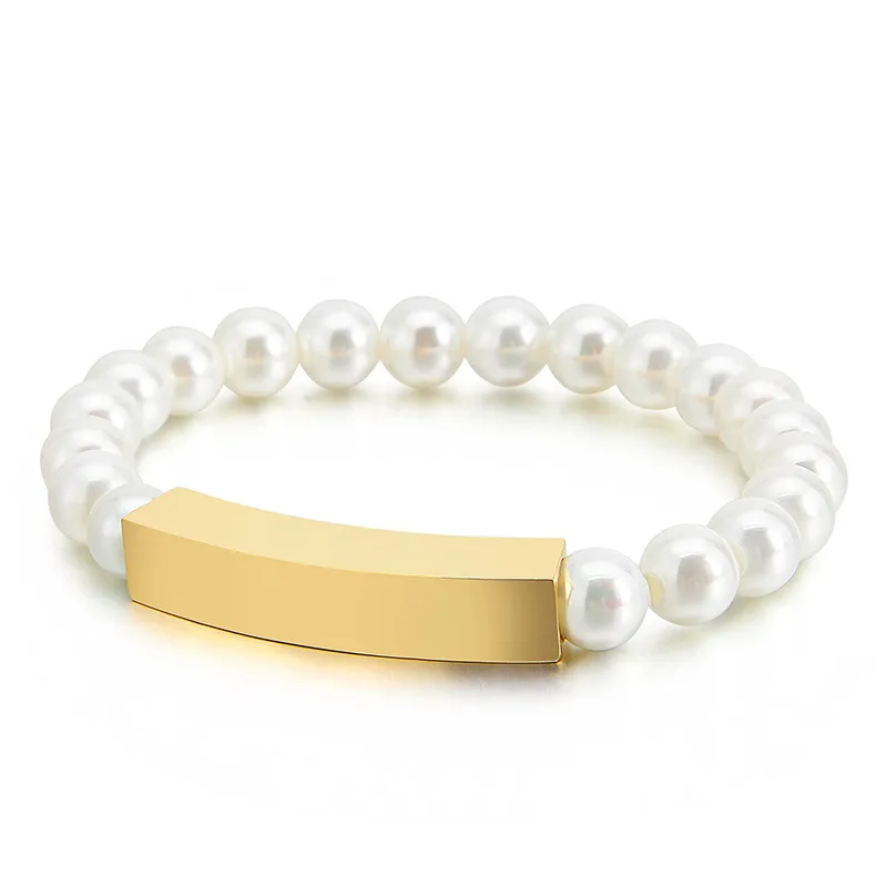 Подгонянное имя, имитация браслеты с жемчужными бусинами, нержавеющая сталь, на заказ, гравировка, надпись, имя, ID, браслет для женщин, мужчин, ювелирные изделия