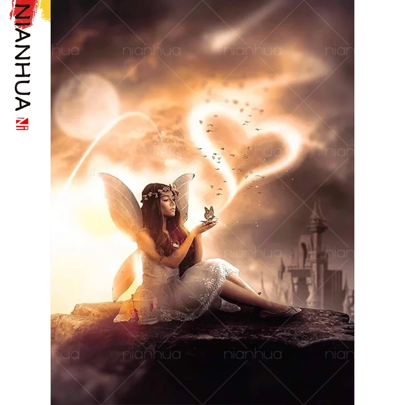 100% полная Алмазная 5D картина "сделай сам", ангел, палочка, цвето...