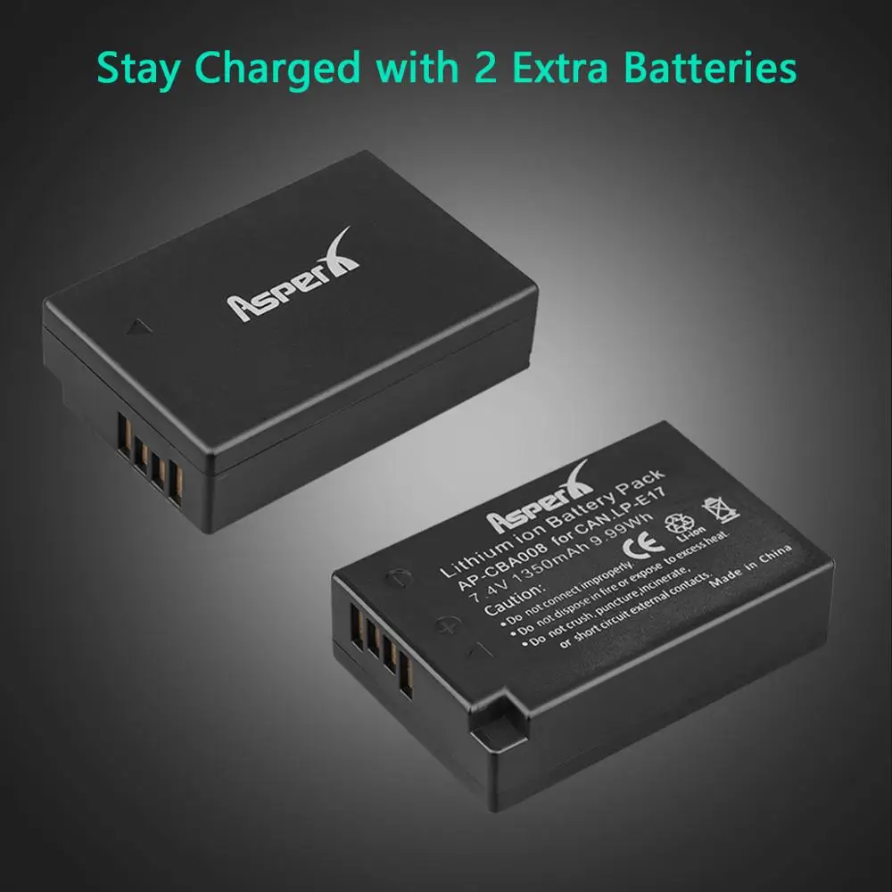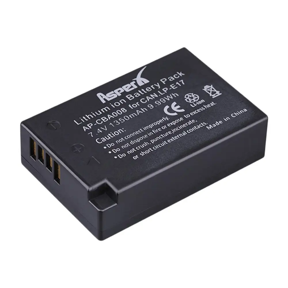 На экране камеры нет уровня заряда батареи. LP-E17 не может заряжаться от оригинального зарядного устройства Canon, только может заряжаться от зарядного устройства AsperX LP-E17, но оригинальный аккумулятор Canon LP-E17 может заряжаться от зарядного устройства AsperX.