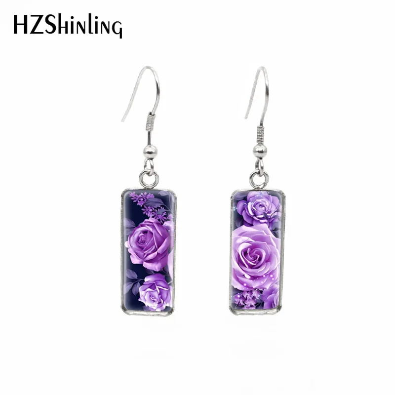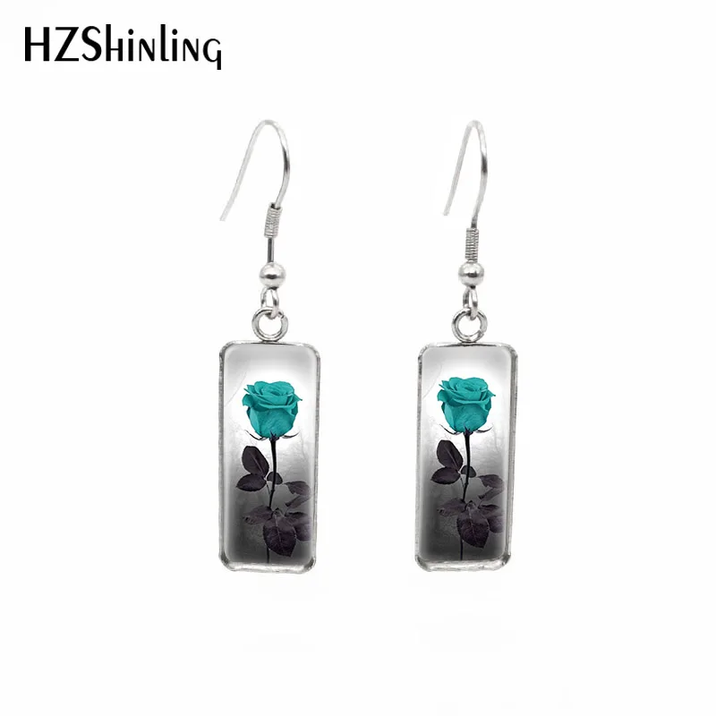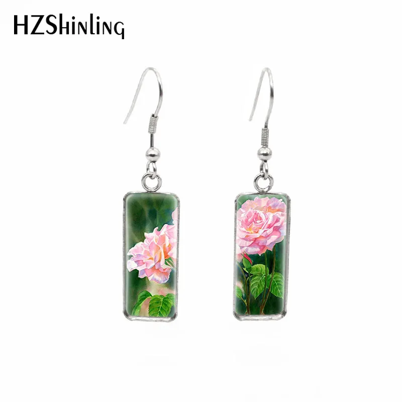 Серьги-Крючки с красной розой, прямоугольные, с цветами, для рукоде...