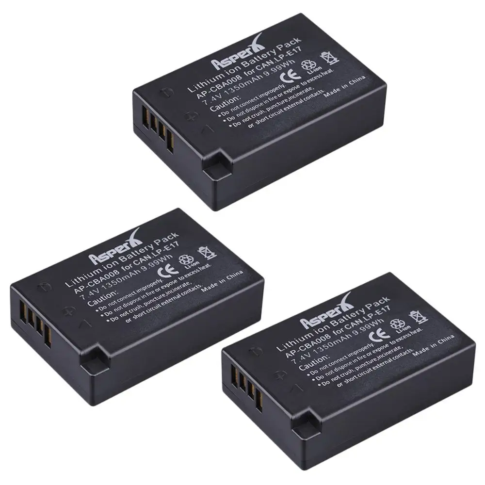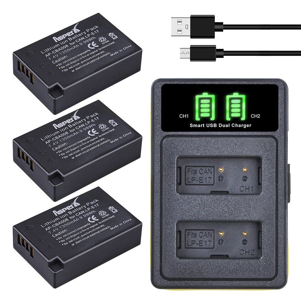 3 шт. 1350 мАч LP E17 LP-E17 батарея li-ion Bateria + светодиодный USB двойное зарядное устройство для Canon EOS RP Rebel SL2 SL3 T6i T6s T7i M3 M5 M6