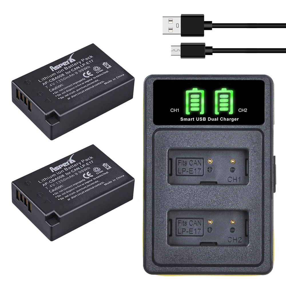 2 шт. 1350 мАч LP E17 LP-E17 батарея li-ion Bateria + светодиодный USB двойное зарядное устройство для Canon EOS RP Rebel SL2 SL3 T6i T6s T7i M3 M5 M6