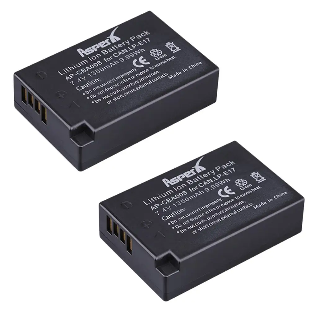 Аккумулятор AsperX LP-E17 в процессе обновления. Он покажет уровень мощности на Canon Rebel T6i, T6s, T7i, EOS SL2 ,750D, 760D, 77D , 800D, 8000D, камера EOS 200D KISS X8i Digita SLR (не включает в себя камеру Canon M Series s ) . Не отображает Срок службы батареи в камерах Canon Eos M3, M5, M6. Аккумуляторы должны заряжаться от зарядного устройства AsperX.