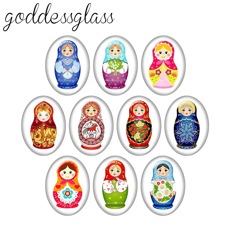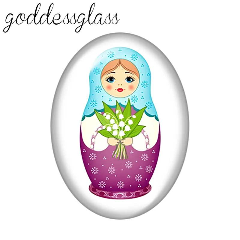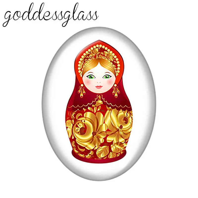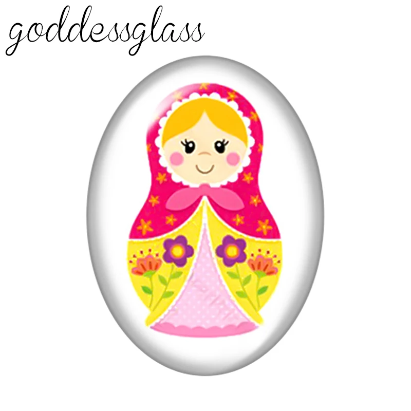 Матрёшка Матрешка Русская игрушка изображения 10 шт, смешанные цвета, 13x1 8 мм18x2 5 мм30x40 мм Овальный фото кабошоны разрисованные изделия из стекла с плоской задней частью, украшения своими руками