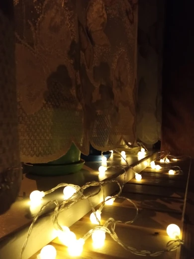 Очень приятная гирлянда. Развесили на балконе, стало уютно вечером кофе пить.