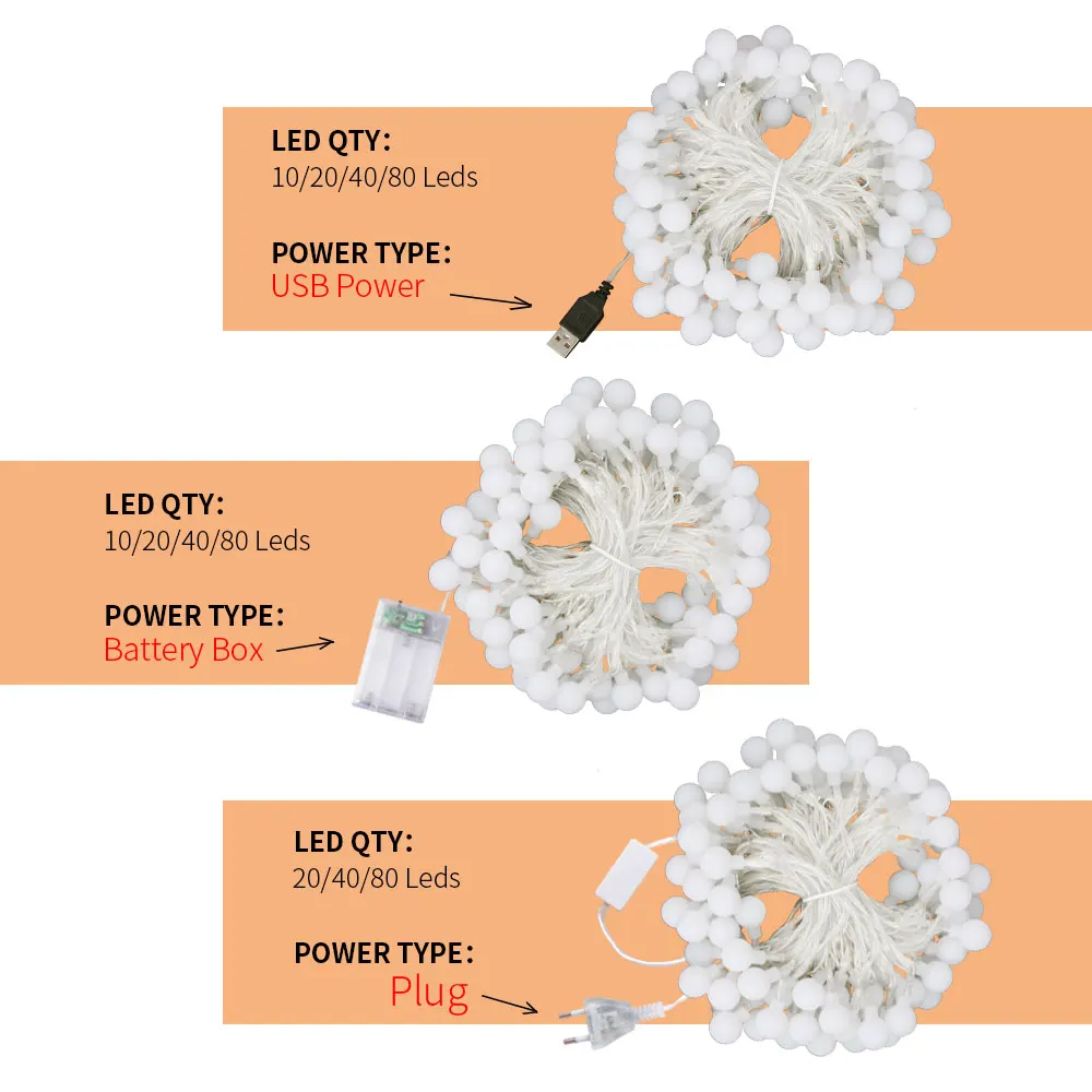 Светодиодная гирлянда, сказочный шар, светодиодная гирлянда на цепочке, праздник, Рождество, уличный декор, лампа на батарейках с USB