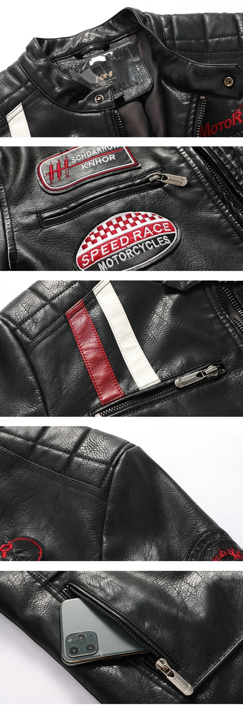 Мужские кожаные куртки, Мужская мотоциклетная кожаная куртка, пальто с вышивкой, теплая куртка из искусственной кожи, локомотив, Мужская одежда для осени и зимы