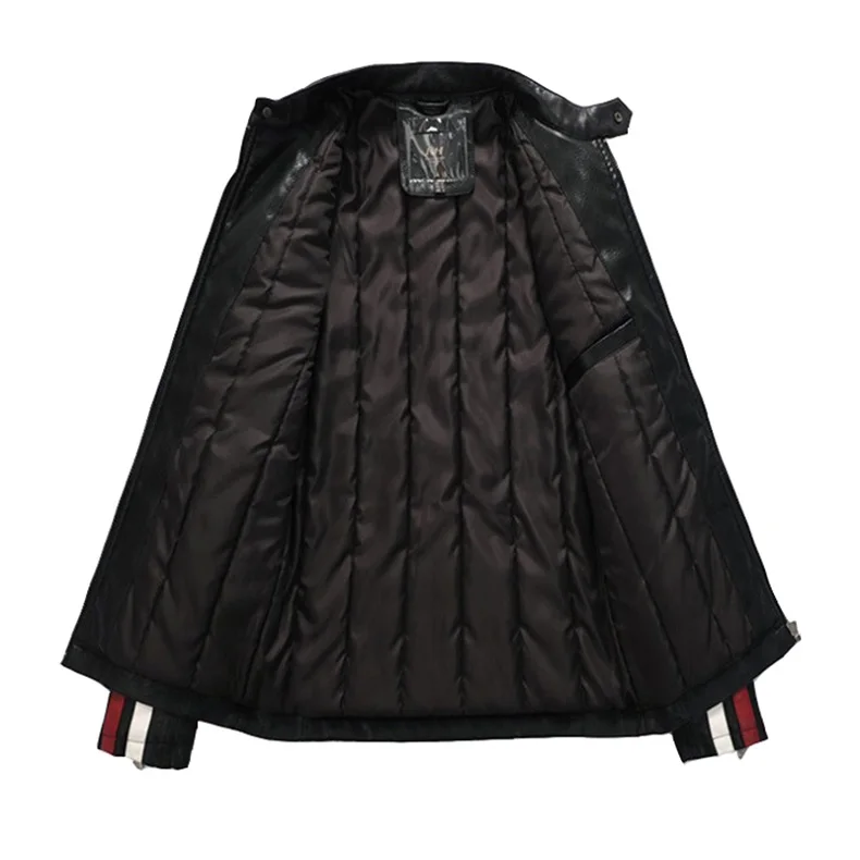 Куртка мужская облегающая из экокожи, мотоциклетная теплая уличная ...