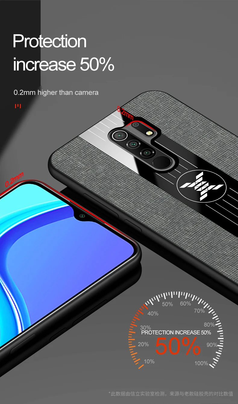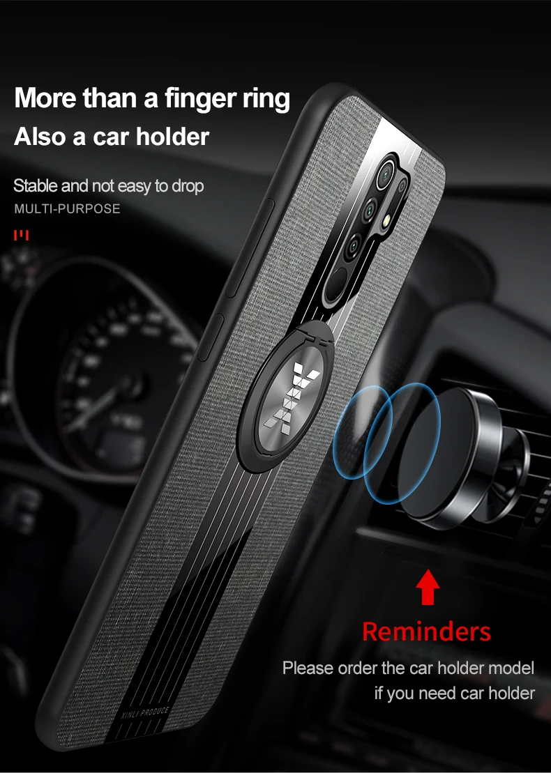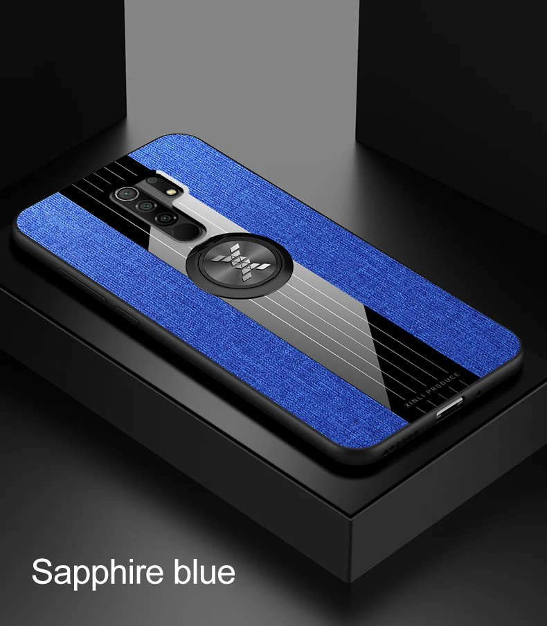 Чехол для Redmi 9 с кольцом-держателем, тканевая текстура, Жесткий Чехол, мягкая рамка, тканевый чехол для телефона Xiaomi Redmi 9, Redmi9