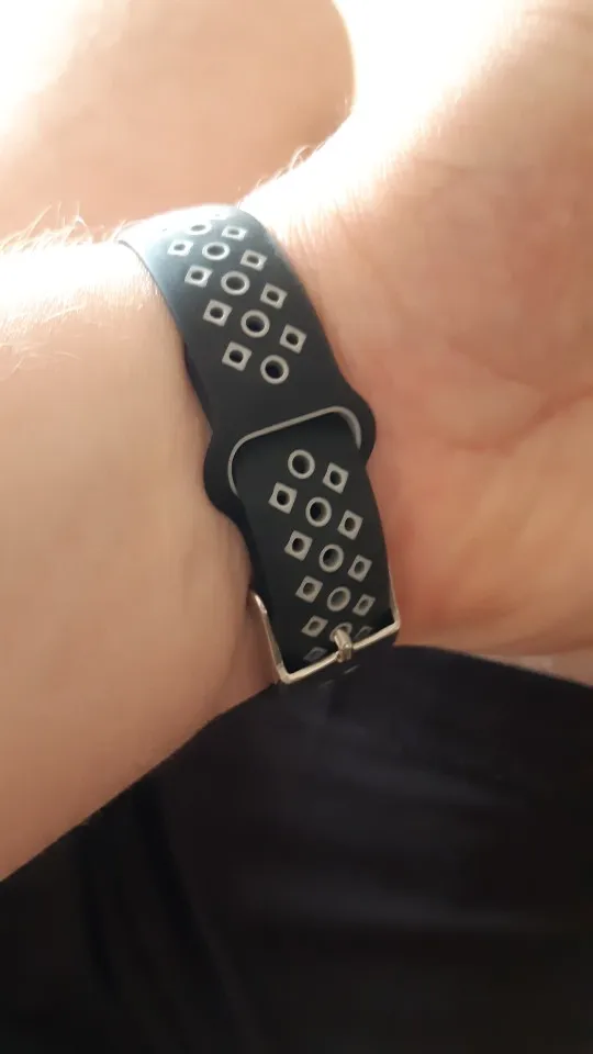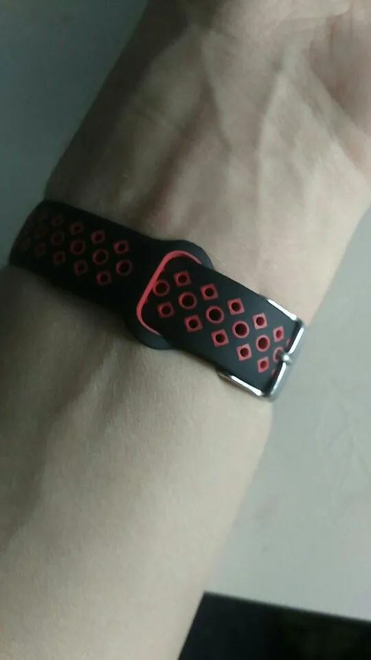 Отправлен быстро, дошёл вовремя. Цвета тусклее, чем на фото товара (но для меня не так важно). Конструкция продуманные его оригинального ремешка (петля не будет за всё цепляться и рваться), только здесь есть металлический элемент касающийся кожи (будет натирать и накаляться). Но в общем нормально. Время покажет.