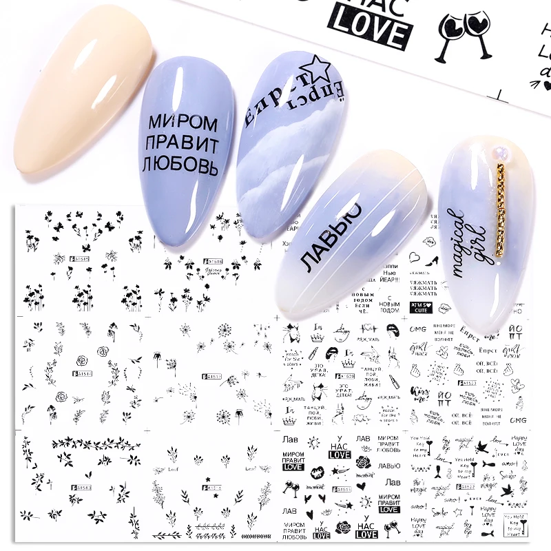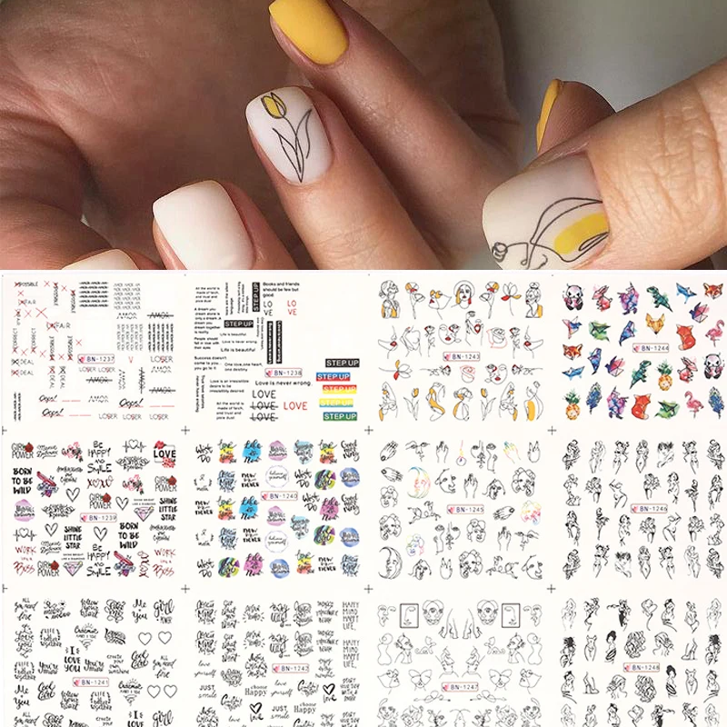12 цветов, набор смешанных цветов, геометрический дизайн ногтей, водные переводные наклейки, слайдеры, цветочные листья, дизайнерские наклейки для ногтей
