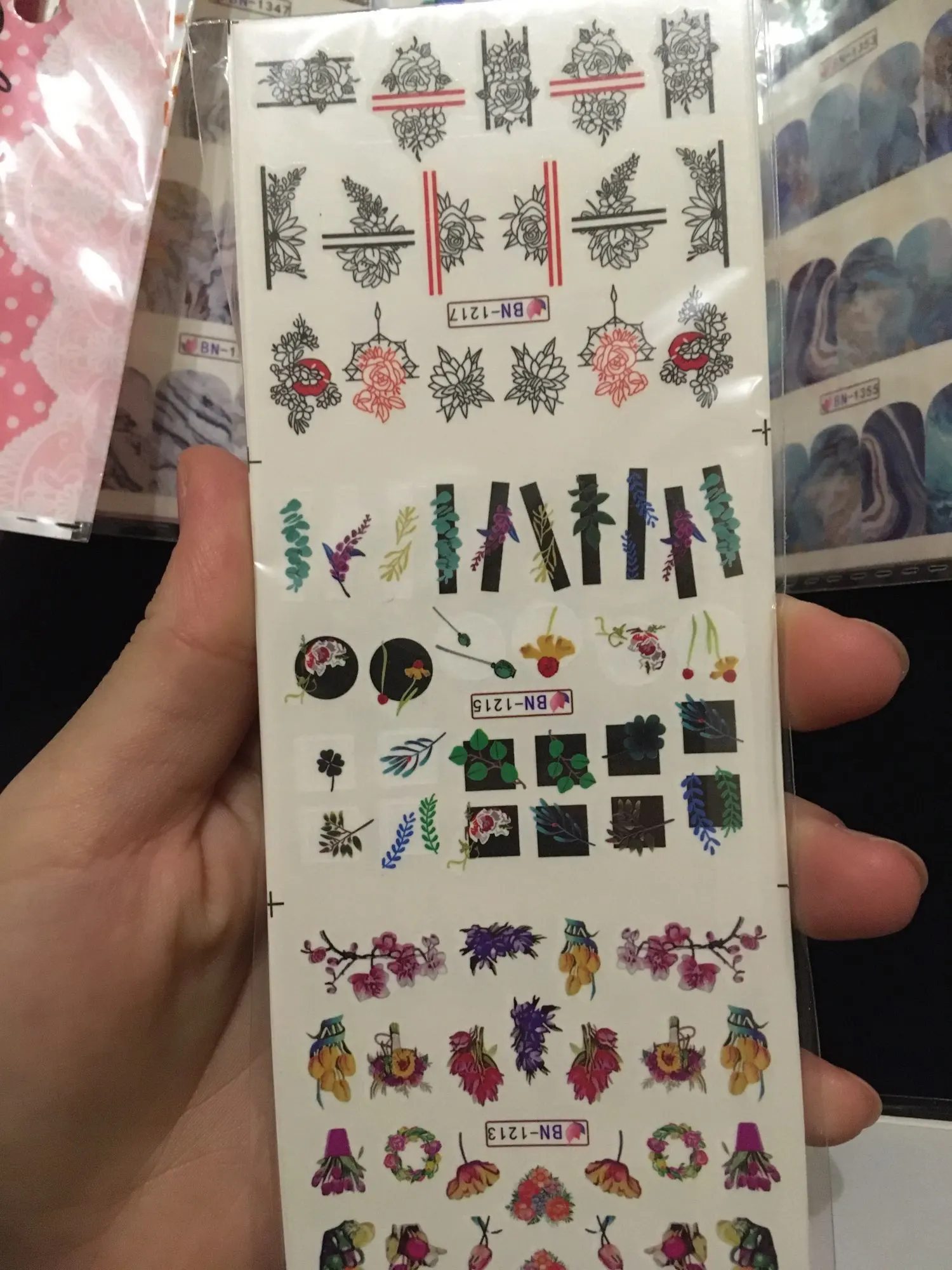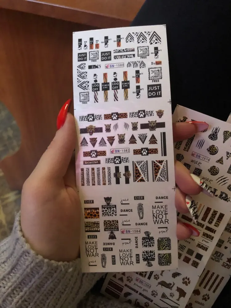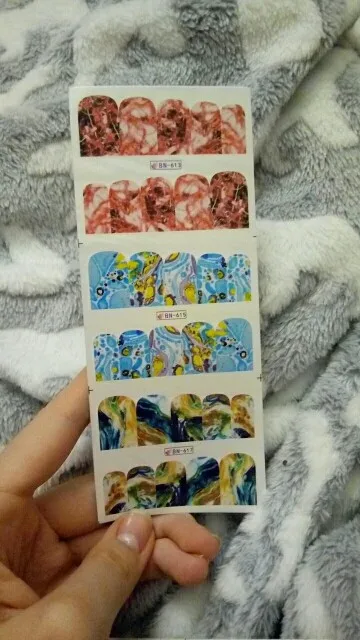 доставка с отслеживанием. слайдеры очень классные. такие интересные и необычные рисунки. и яркие и более светлые. большая часть сплошные на весь ноготь. но есть и мелкие рисунки, как акцент. пока очень понравились. очень модные. ну а качество проверю уже при ближайшем маникюре - недели через две. слайдеры не на длинные ногти и на среднюю ширину.