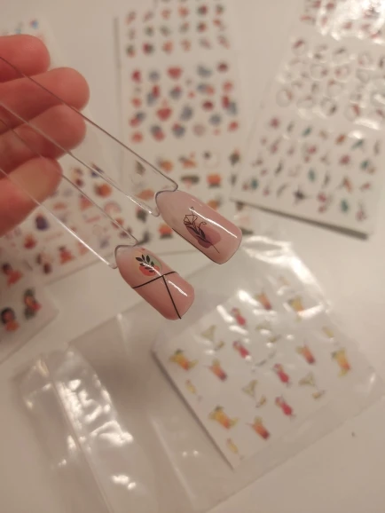 Все быстро пришло ,упаковано отлично.наклейки силиконовые классные .Я их просто пинцетом переношу на ноготок а затем перекрываю базой только потом топом,так не облазят .Они голографические и хорошо переливаются.Буду еще заказывать!