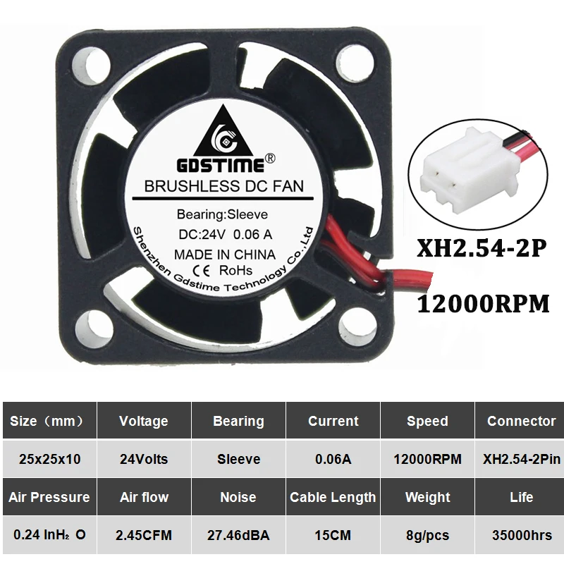 2 шт. Gdstime 25x25x10 мм 2510 Мини 25 мм 24 В бесщеточный вентилят...