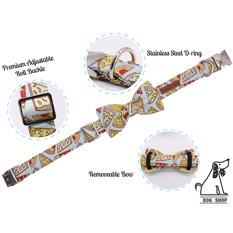 ПиццаОшейник и поводок с галстуком-бабочкой из розового золота с металлической пряжкой из хлопчатобумажной ткани для собак и кошек, ошейник и поводок для собак, аксессуары для домашних животных