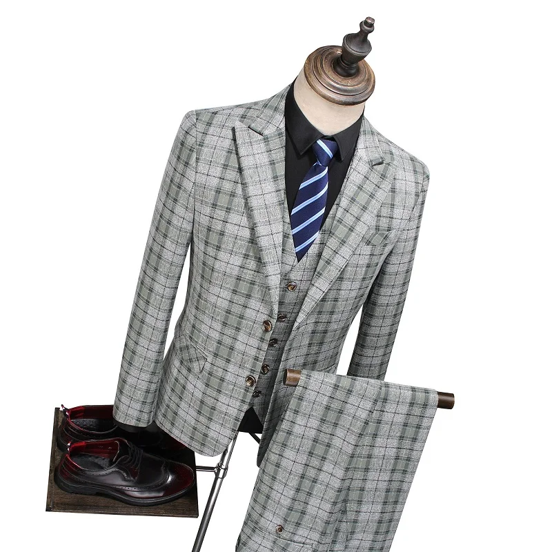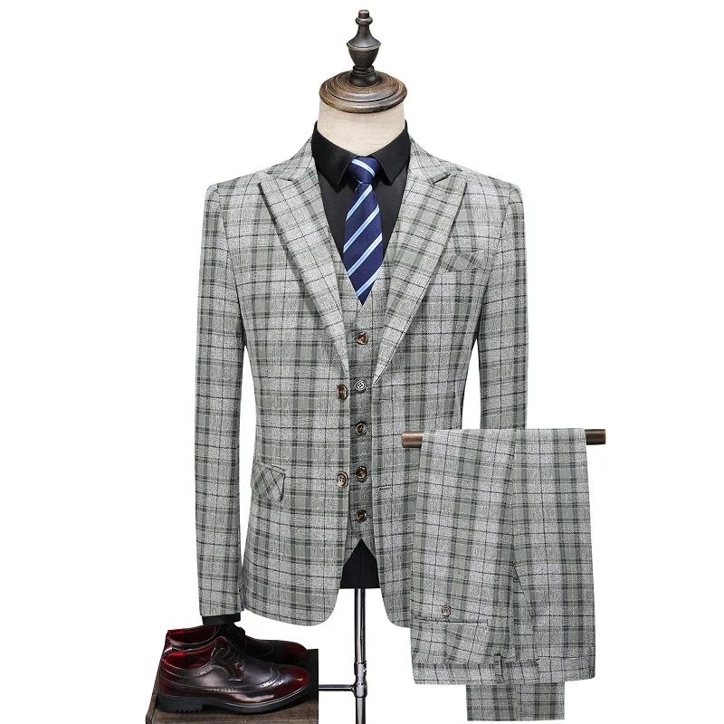 Мужской костюм из жилета и штанов, облегающее синее клетчатое платье в английском стиле, смокинги для работы и офиса