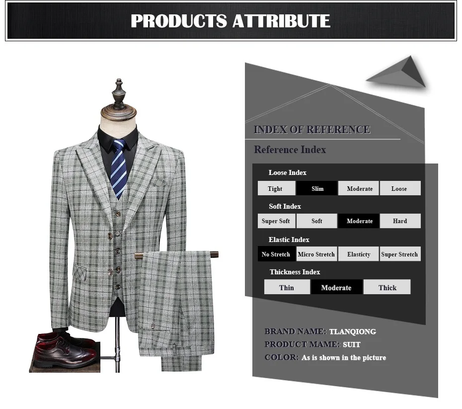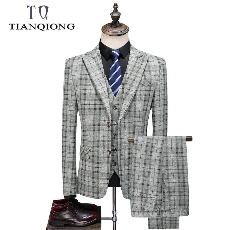 Бренд TIAN QIONG, 3 шт., мужской шерстяной клетчатый приталенный Св...