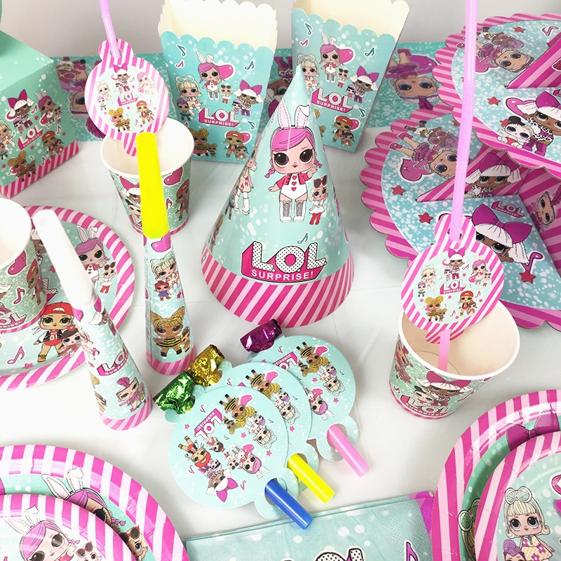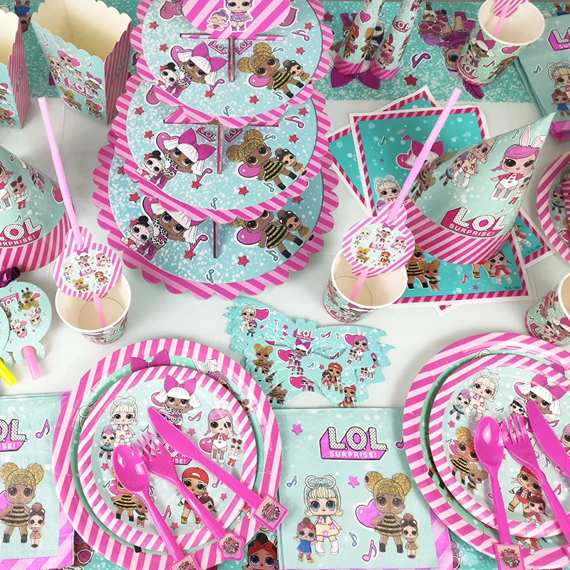 Оригинальные куклы-сюрпризы LOL, украшения для дня рождения, одноразовые тарелки, вилки, чашки, игрушки на день рождения, подарки для девочек